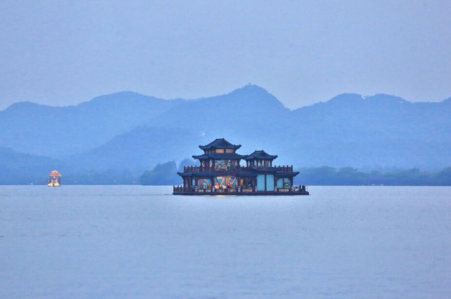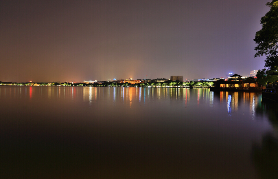 夜晚十点钟,西湖周围的灯都渐渐暗去,所有人都不再忍心去打扰她的梦乡。