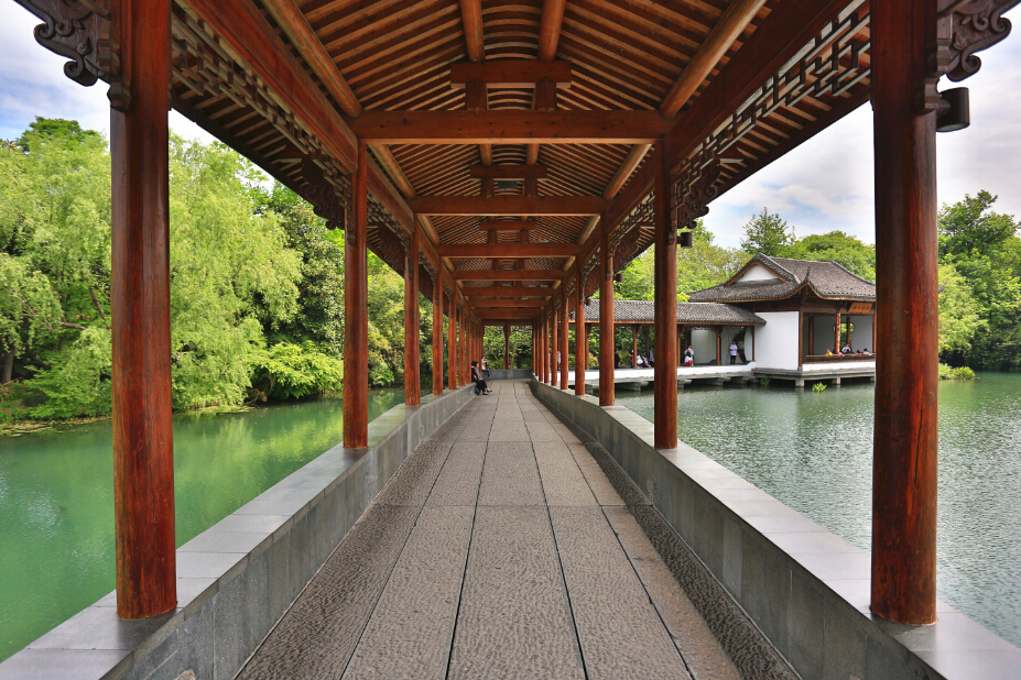 茅家埠的水上长廊,大清早老爷爷老奶奶们就都来此锻炼、纳凉了。从茅家埠到南湖兜一圈,期间有三台梦迹、雪舫、子久草堂、武状元坊,都可以一观。
