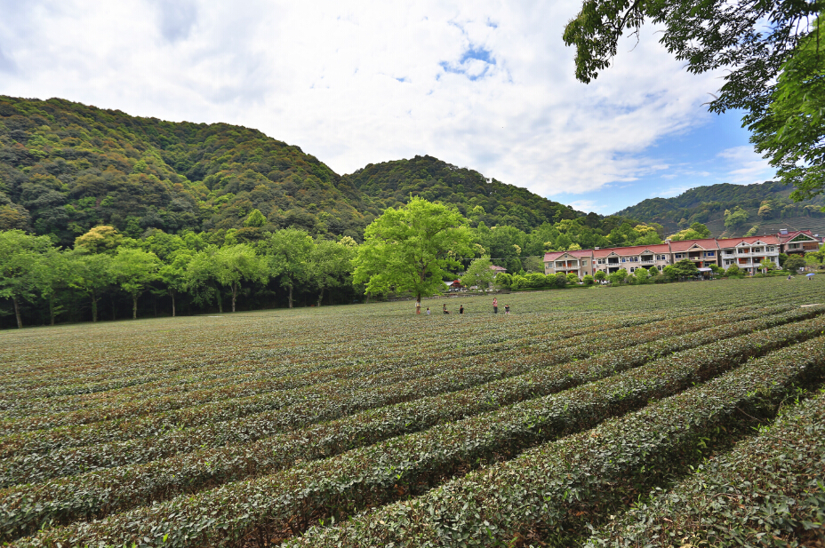 第二天午饭后,二姐带我们驱车前往云栖竹径,路遇梅家坞,看到不计其数的杭州人来此喝茶。梅家坞溪谷甚广、丘陵成片,常年草木繁盛,峰峦叠翠。这里盛产茶叶,四月初清明时节,便可以看到采茶女们穿梭忙碌的身影。