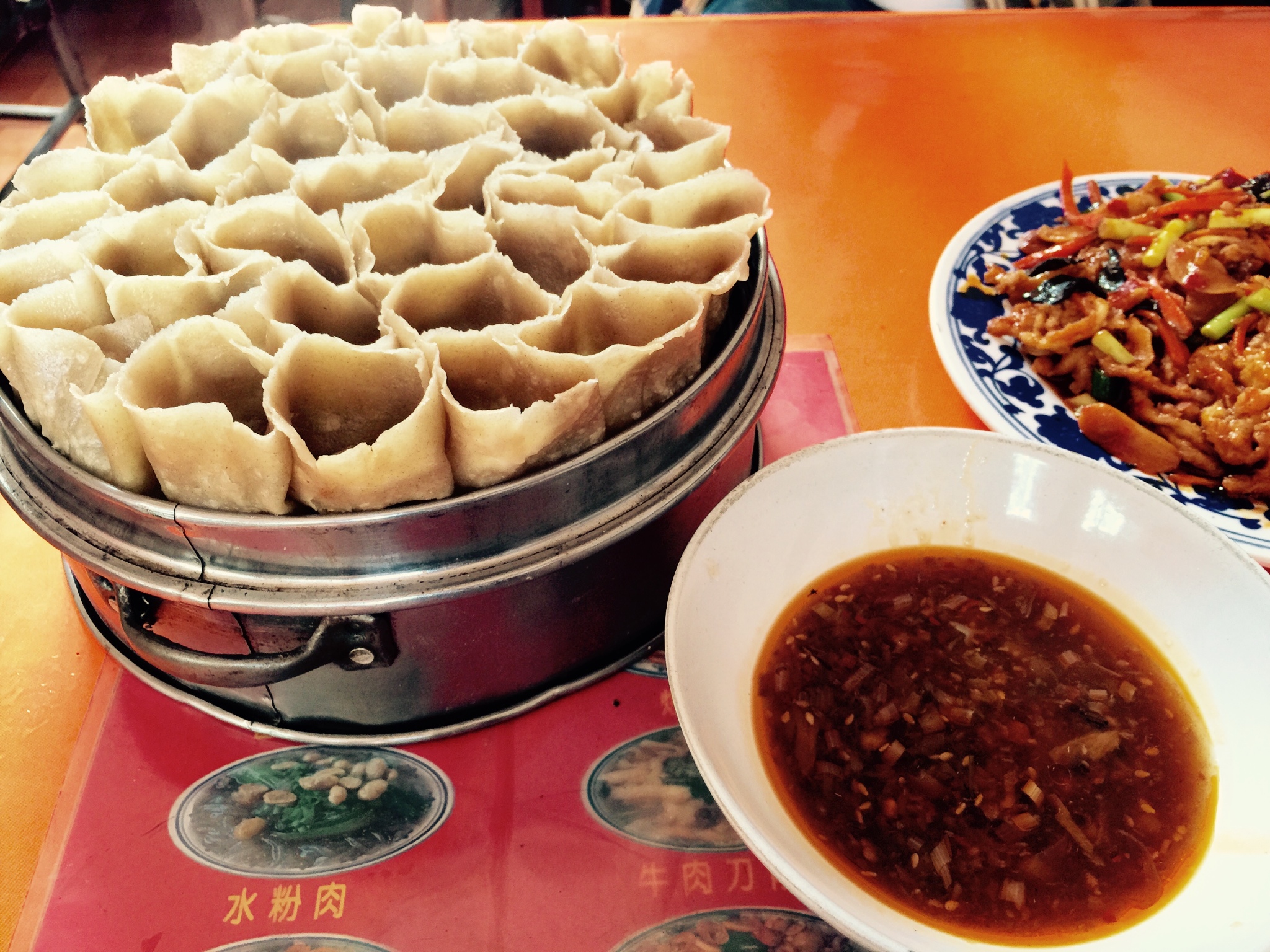 稍作整顿已经是下午一点多了,跟老年人一样到点儿就饿的大湿已经饿得苟延残喘,我们决定在客站对面一家餐馆解决午饭。餐厅名字忘记了,点了莜面栲栳栳和鱼香肉丝、米饭。山西以面食为主,平遥的饭都比较呵呵哒,不要指望能吃到多惊艳的美食。