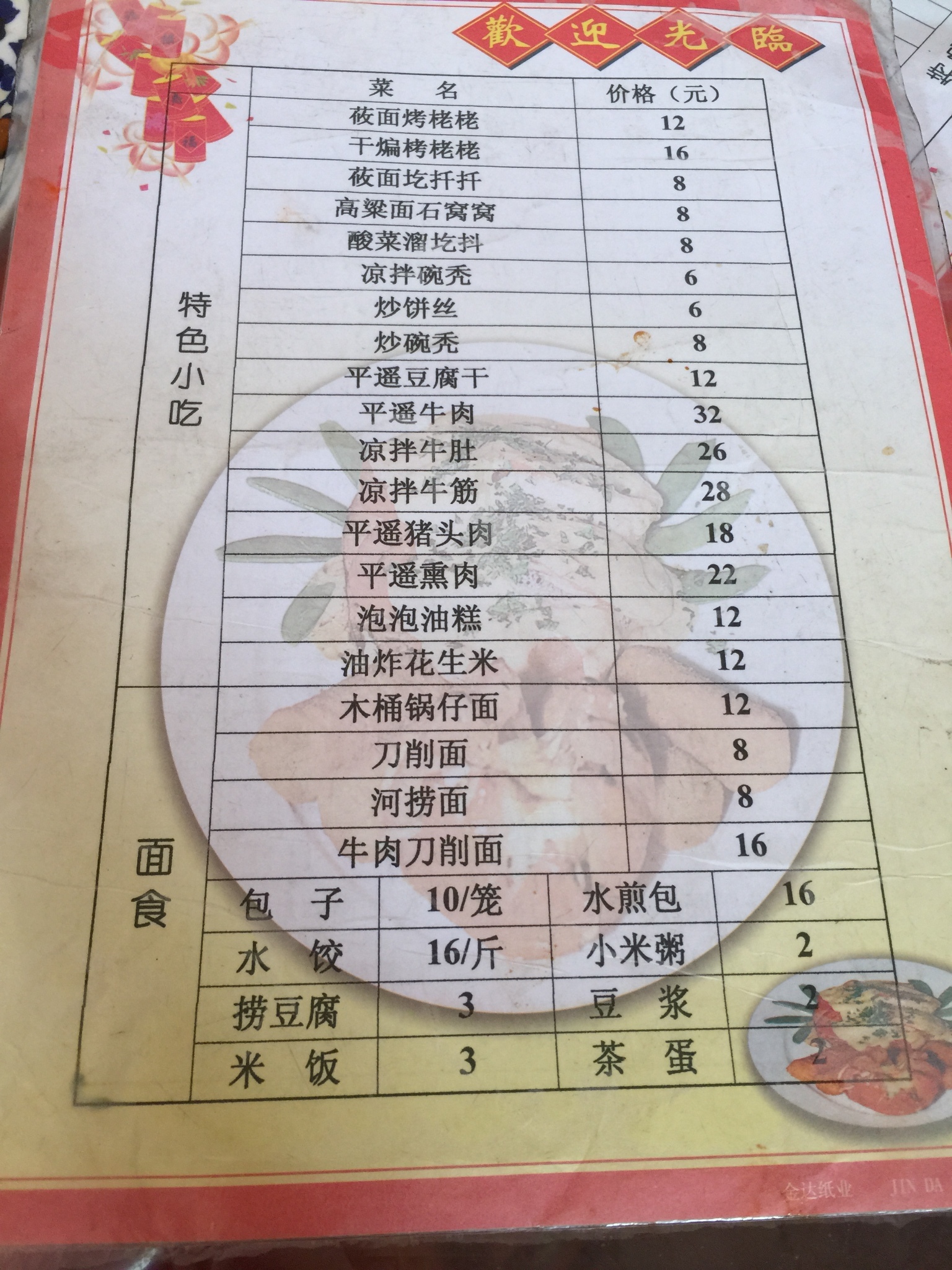 实话说平遥的莜面跟炒菜比起来还是不错的,右上角是鱼香肉丝,里面还有蒜苔和胡萝卜丝的鱼香肉丝......价位适中。