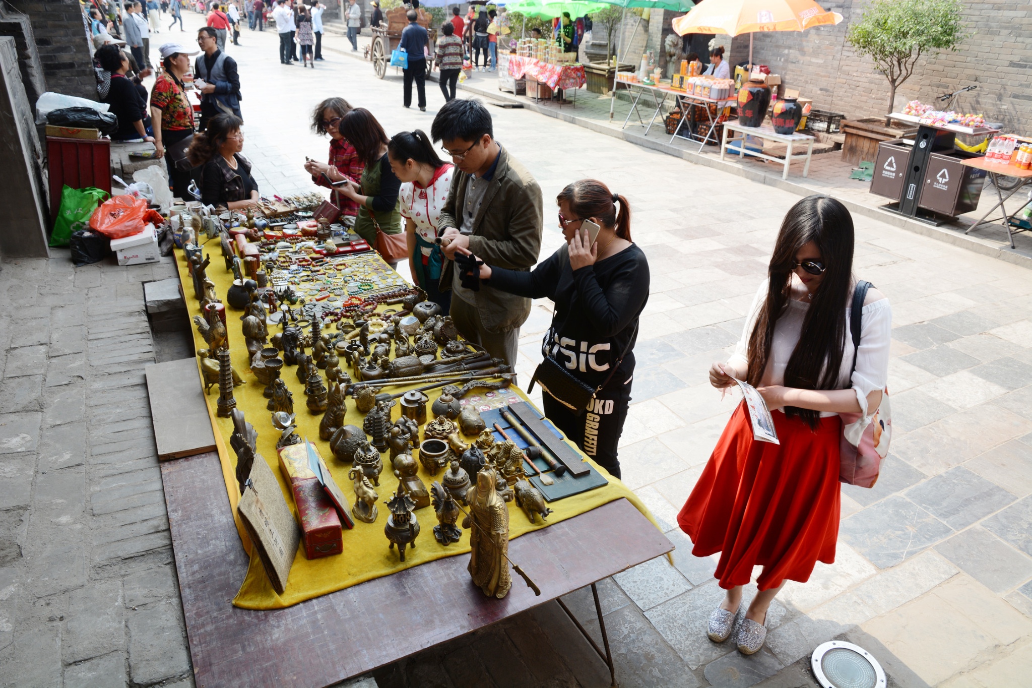 走出县衙,街道上就有景点必备的那种提供服装道具照相的摊点。本来我想找一个有秀禾服有轿子的摊摊穿一穿,但是翻遍古城都没有干净一点的...大湿说:你要穿这回西安去大雁塔,找那十块一张的快照去。