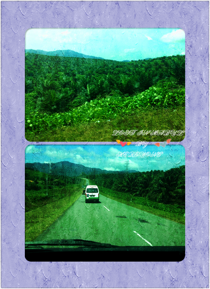 我們乘坐中巴出了鬥湖市區,看到路況真的是不怎麼樣,只有雙向兩車道,都還比較窄,但是慢慢的,眼睛裡便充滿了各式的綠,道路兩側應當是屬於丘陵地貌吧,漫山遍野的油棕樹,綠毯一般伸向遠處,一望無際。隨著車行將遠,一股似曾相識的感覺從心底油然而生,馬上,我想起來了,那是去年在蘭卡威自駕時的那種感覺,小路,路兩邊茂密的綠樹,當時恨不得換下司機,我來開車。車子開的飛快,估計是搶時間,看著路邊不是閃過的一個個水果攤和那一個個誘人的水果,真的讓我垂涎三尺。最終我忍不住想讓司機停車買點兒帶上馬布島,沒料想,這哥哥卻指指腕上的手錶說時間來不及了。好吧,哥忍了,等到亞庇之後再去饕餮一頓吧,反正昨晚曉兒告訴我,亞庇的皇帝蕉一馬幣一大串,期待啊。