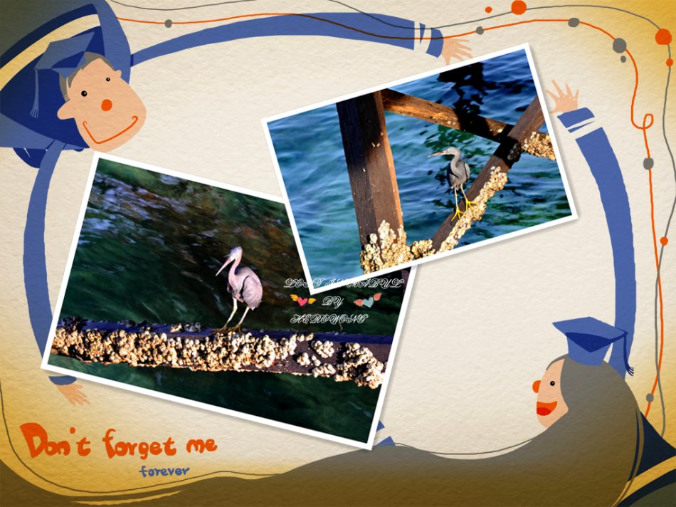 放下行李後,突然聽到窗外幾聲沉悶的鳥叫,到陽台一看,隔壁水屋下面的木架子上立著一隻說不上名字的鳥兒,有點兒像蒼鷺,顏色是藍灰色,很優雅的立在那裡。