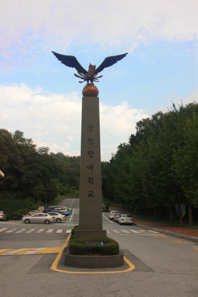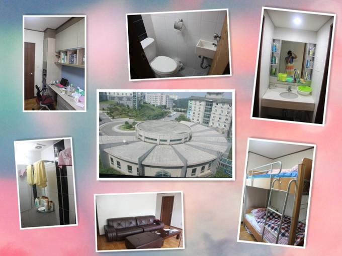 抵达机场之后,顺天乡学校的车将我们接到学校,位于牙山市新昌,一路上,看着窗外,都是看不懂的文字,一种深处于韩剧中的感觉,一种欣喜与迷茫。大约三个小时的车程,我们终于抵达学校,抵达宿舍。我们住的是套间,一个套间6个房间,2个卫生间,2个洗浴室,每个房间两个人。房间虽小,但是五脏俱全,储物空间相当大,有空调也有地暖。