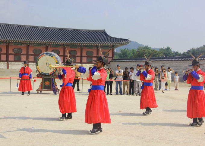 【光化门】老师带队,我们的第一站是光化门,去看了交班仪式,不过我是没看懂,感觉也就是感受下文化,没有太大的意思。