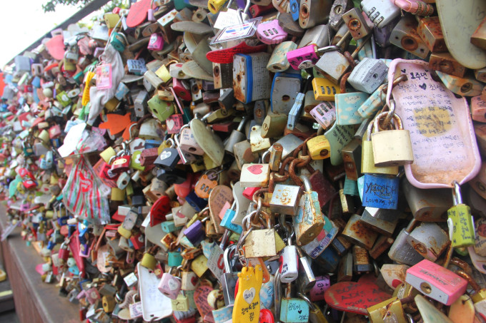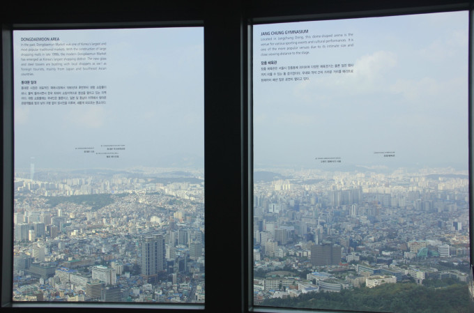 【首尔塔】首尔塔位于南山,我们找了很久才找到电梯,就是这个小箱子。之后我们一路爬山爬到山顶。这边有爱情锁,有泰迪熊博物馆,有各种纪念品店。首尔塔和泰迪熊博物馆都是另外收取门票的,不过不贵,几十块钱。我们去的时候因为泰迪熊博物馆在装修,只有一个泰迪熊的纪念品店,但是里面东西很贵,并不推荐购买。上了首尔塔之后,可以俯瞰首尔,上面也有一些店铺,咖啡,以及明信片,价格略贵。