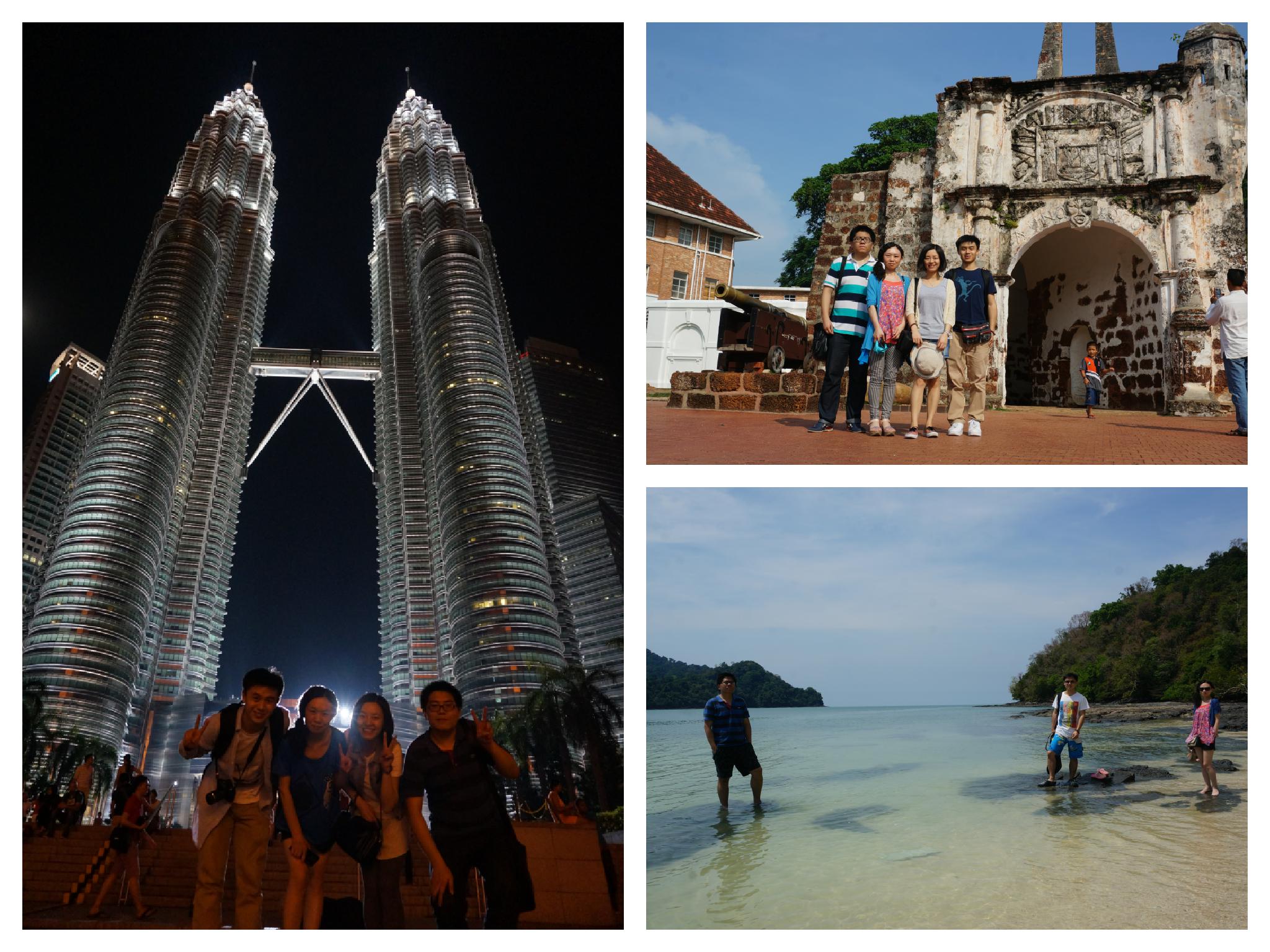 路线:香港出发,直飞吉隆坡,大巴前往马六甲,大巴返回吉隆坡机场飞兰卡威,轮渡前往槟城, 夜航回香港