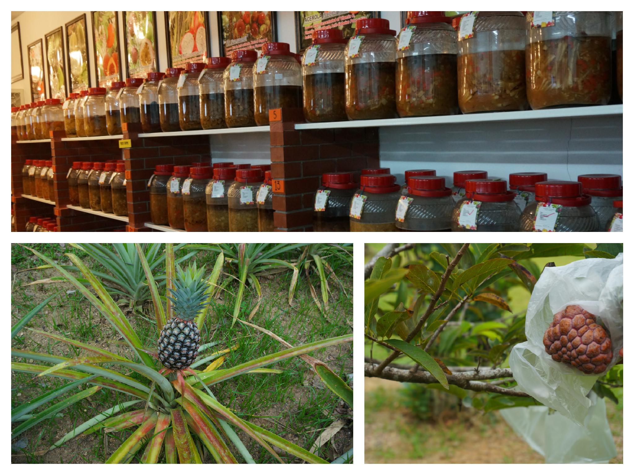 今天的计划是去热带水果园,早晨从Hotel步行到光大坐巴士的途中,在一处大排档吃了早饭,在这种排挡吃饭的好处就是可以从不同档口尝试不同花样的食物,咖喱面,炸鱼米线,炒粿条,板面各来一份四人分着吃。105巴士到热带水果园,由于果园地处偏僻,下了巴士还需要山路十八弯才能到,所以这时给园内打个电话就会有专车到山下来接了。不熟状况的我们还好在山脚下遇到一个园内的接送车,司机大哥热心让我们坐上车,其实在那一秒钟我有想过是不是免费的...手上的马币不多了啊...还好,是免费接送~到了园内一问门票价钱,42RM, 又一次知道真相眼泪掉下来啊,门票比攻略上讲的贵了十几马币,是物价涨了么?!买了门票就被送上了山上的果林,由讲解员带着介绍各类热带水果(有中文讲解也有英文讲解),可惜季节不对没能看到榴莲,其他水果的话感觉没介绍几样,之后就带一行游客进了他们的商品区—各种水果酵醋,椰子油等。尝了水果酵醋,确实不错,价钱和商场比起来也不算贵,不过鉴于液体不方便携带就没有买。穿过商品区就是水果任食自助区了,每个人可以凭小票点一杯鲜榨果汁。水果种类挺多的(火龙果,百香果,菠萝,芒果,红天桃,香蕉,橙子...)对于我这种喜爱水果的人来说,还是挺满意的。于ZZ同学这种对蔬菜水果挑三拣四的肉食儿童来讲,应该在默默埋怨我怎么把大家伙儿领到这么一个地方来了...吃完后车子把我们送到了巴士站。