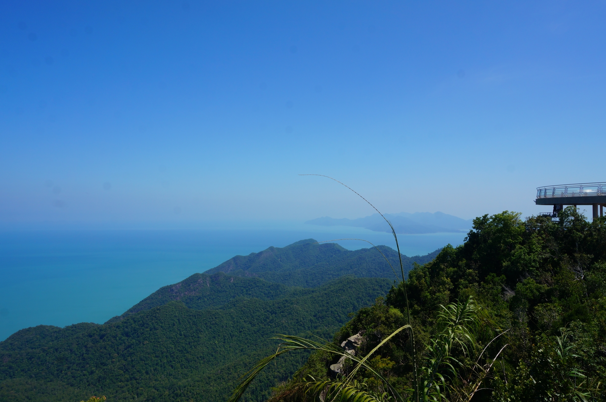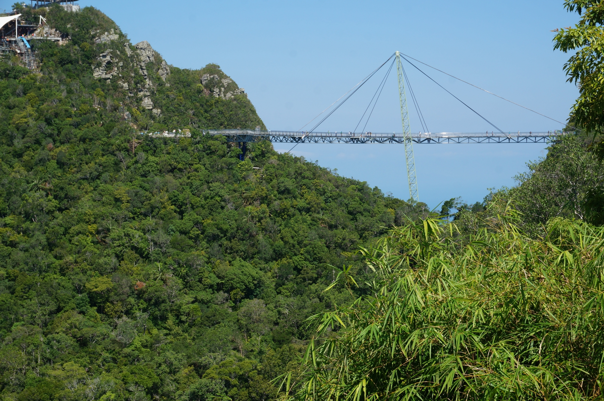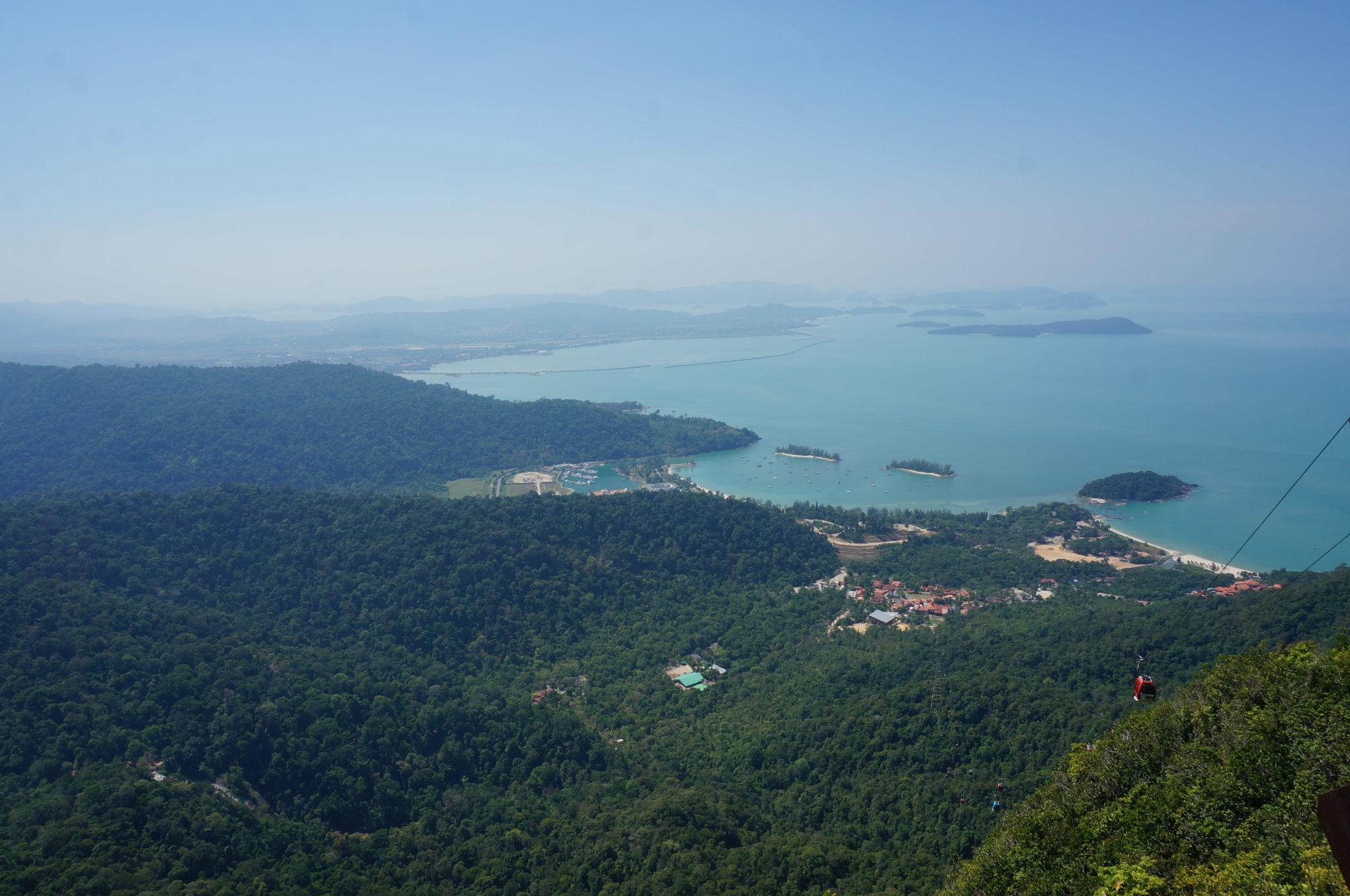 吃完早餐,出来就是Taxi载客点了。岛上的Taxi没有计价器,但有统一规定的价目表,告诉司机目的地后,他会根据价目表告诉你价钱。从这里去到天空之桥,车费是30RM。路程不近,花了有半个小时才到。感觉当地人都很淳朴很善良,司机大哥在车上推销跳岛游之类的给我们,但我们说已经订了,他也没有再Push或者推销其他游玩项目,到目的地之后还热情地领我们去东方村的售票口。门票每人40RM,进去后先看了个不知道多少D的极速过山车,感觉挺赞的。接着就是高空缆车了。