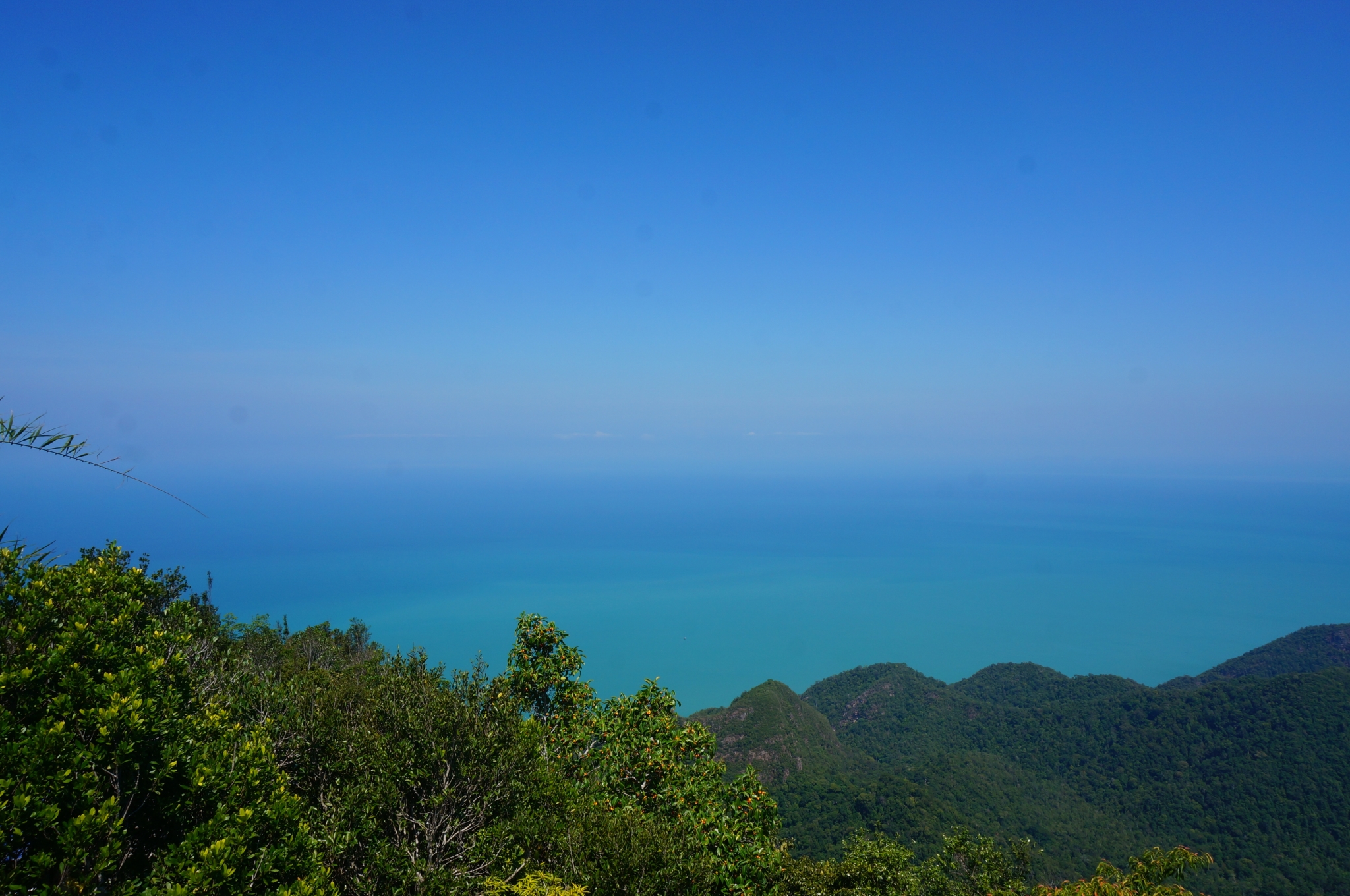到第二个观景台就是天空之桥的入口了。之前看攻略说天空之桥在维修,要到今年后半年才开放,所以大家就抱着遗憾想着似梦似幻的天空之桥是没缘去了。到了第二个观景台才得知天空之桥是可以买票游览的, 又一次感慨网查信息不可全信呐...在此要说明一下由观景台去往天空之桥要穿过树林从一段称不上险恶但绝对崎岖耗体力的山路往下走,穿什么鞋子要注意啦~到了天空之桥,近旁树木丛生,远处海天一色,对于这种带着水汽的蓝,无法抵挡地沦陷...
