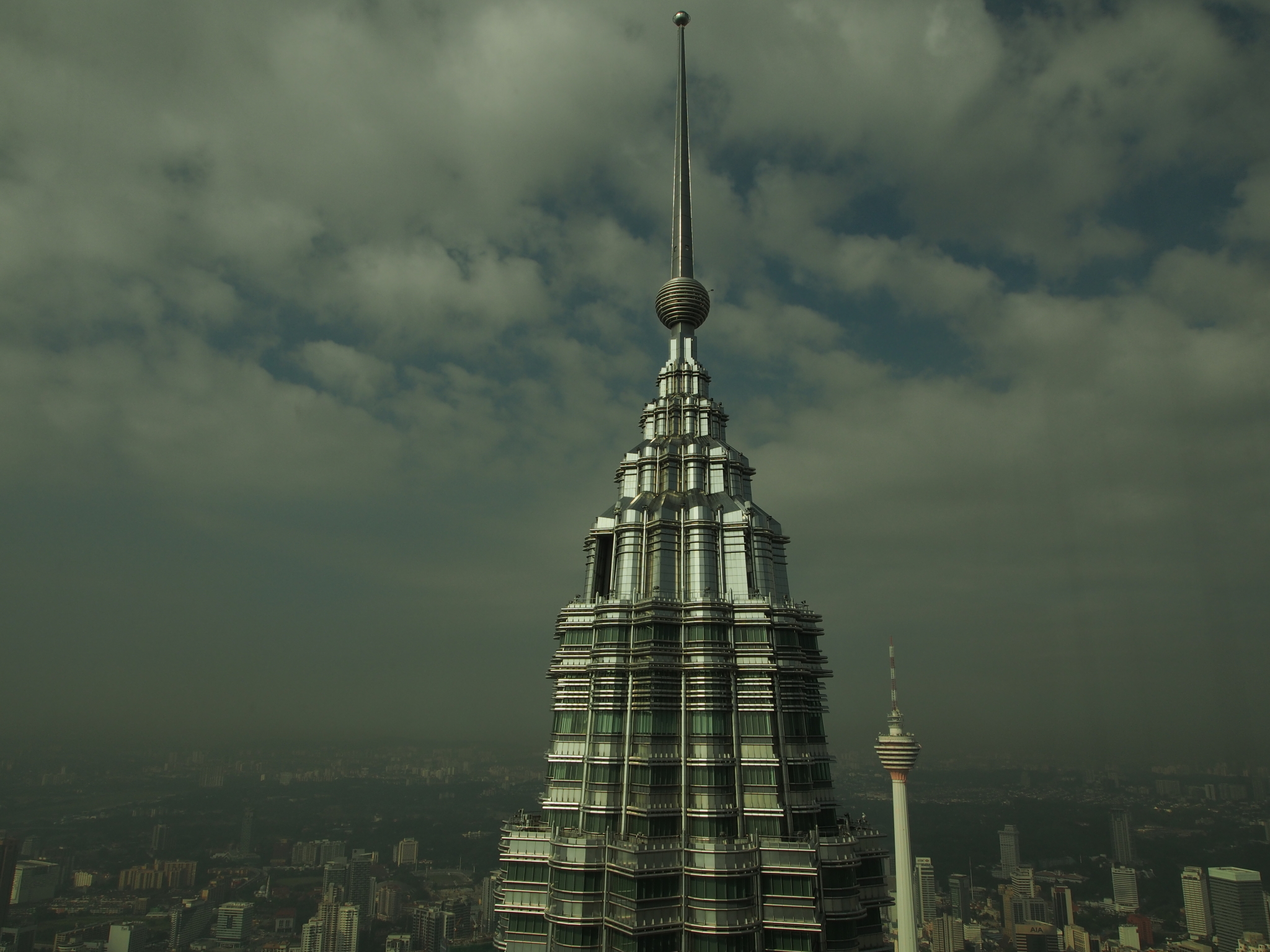 。进了大厦里面,标牌上指示了购票中心的方向,对,是购票,购票!并没有什么所谓的免费票啊啊啊...到了大厦负一层,购票中心还没有开,闸外已经排了弯弯曲曲一条队了。旁边有家便利店,买了三明治和酸奶解决早餐问题。之后排队买票,当被告知票价是80.8RM每人时,迅速在脑中乘了个2算出大概是多少港币。真真“眼泪掉下来”啊,虽说没有传说中的free ticket,但票价也不要介么贵好吗!身为四人小团体此次出行的出纳,我手抖着付了钱......不管怎样,如此地标,还是得精神振作好好看看。整个参观过程和台北101很相似,先乘坐快速升降机到达Skybridge, 停留参观片刻后再次乘坐升降机到最高层,透过玻璃360度欣赏整个城市。