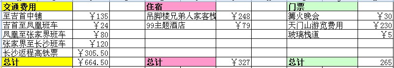 以下是行程费用统计,不包含吃饭、购物,吃因为太零碎,所以没有记账。