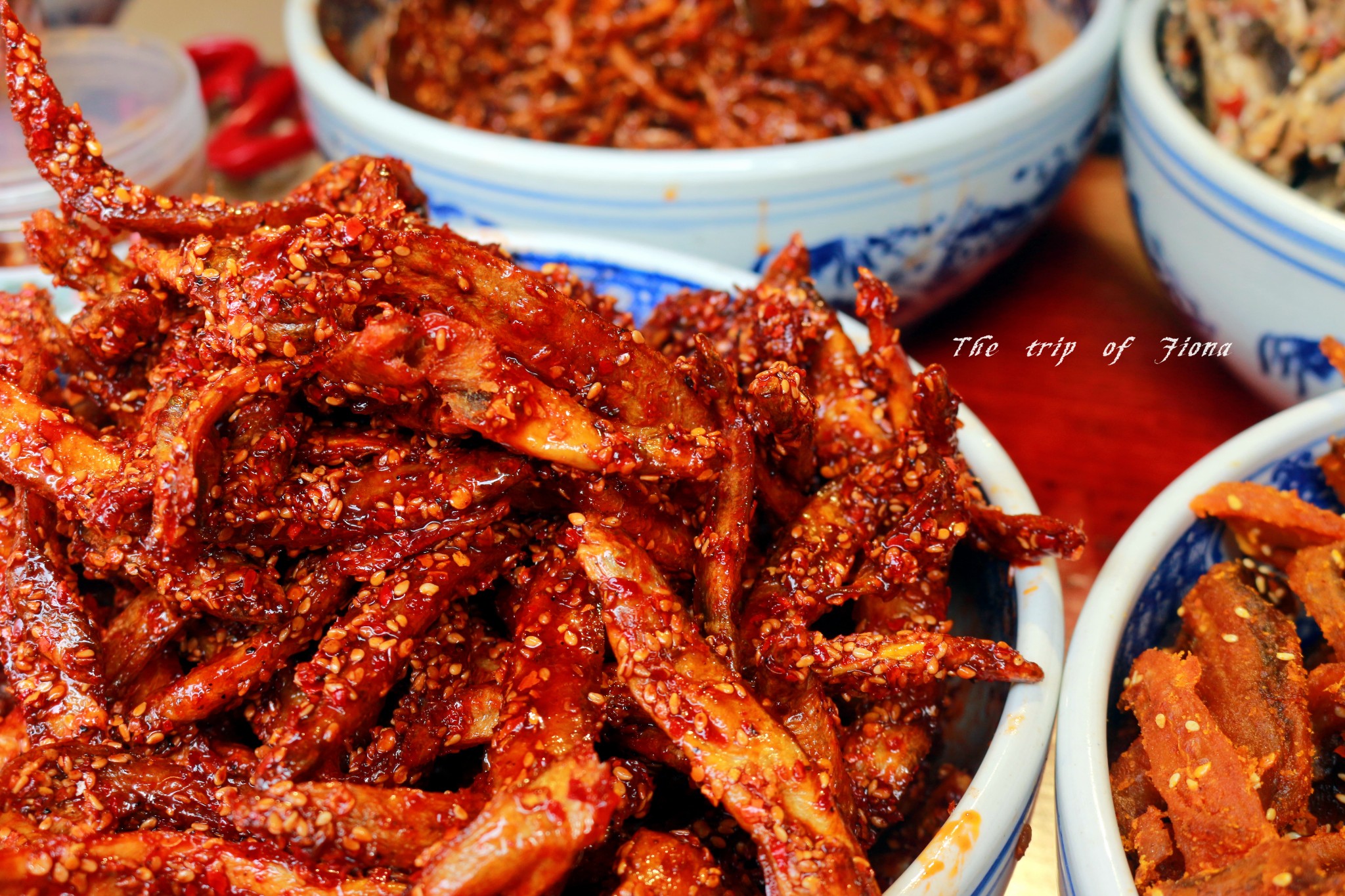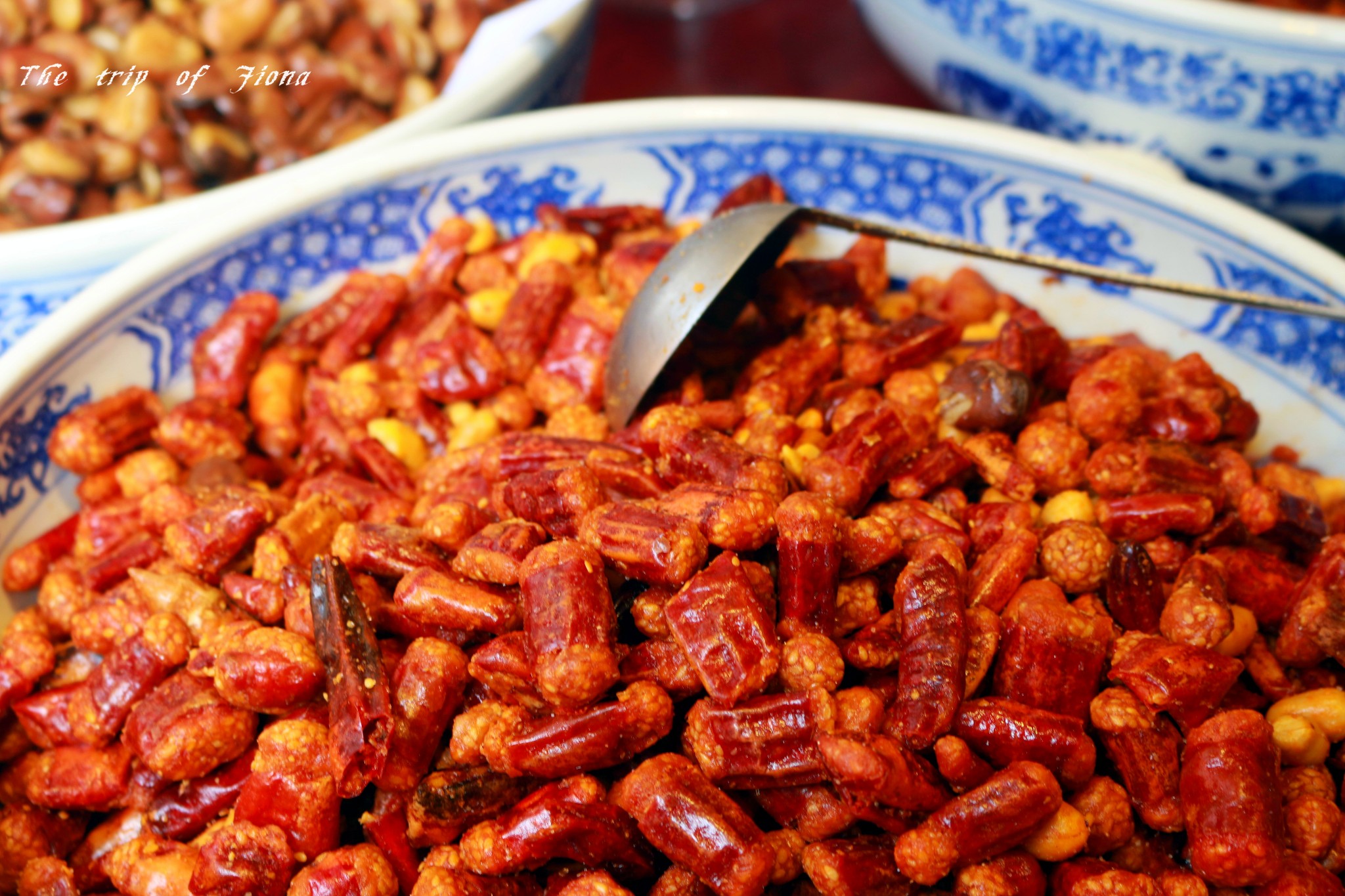 这个很好吃,可惜忘记名字了,就是拿花生芝麻灌到红辣椒里面,然后油炸而成