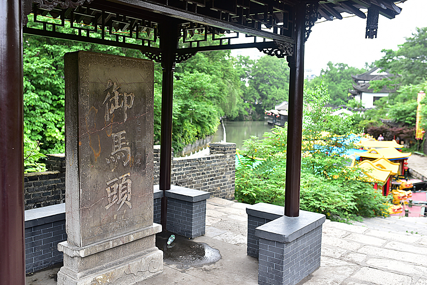 乾隆十八年,即公元1753年,扬州盐商于天宁寺西园兴建行宫,三年后建成。宫前建御码头,乾隆游瘦西湖便在此登船。御码头为青石所砌,历经二百多年风雨,完好无损,坚固如初。相传:因为皇帝的脚下不能有任何障碍,因此御码头的“码”去掉了石字旁。现为著名的“乾隆水上游览线”的起点。