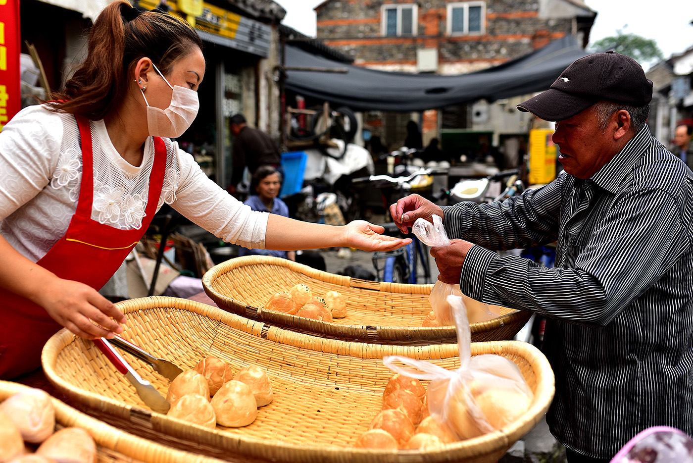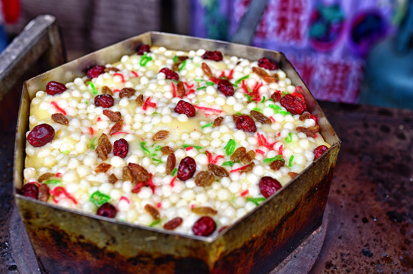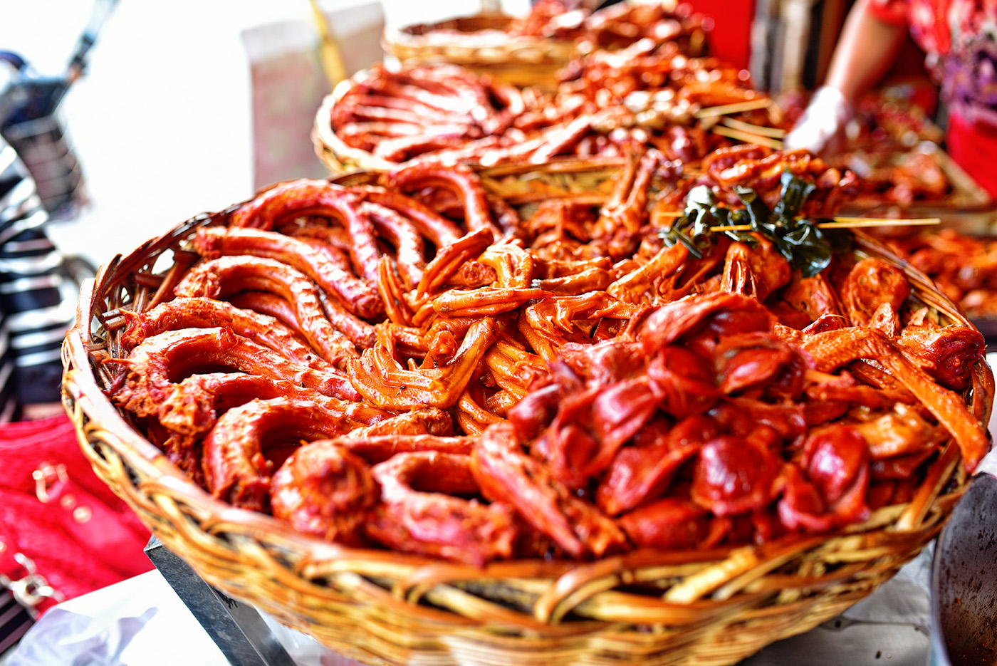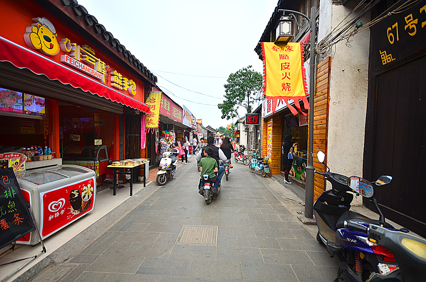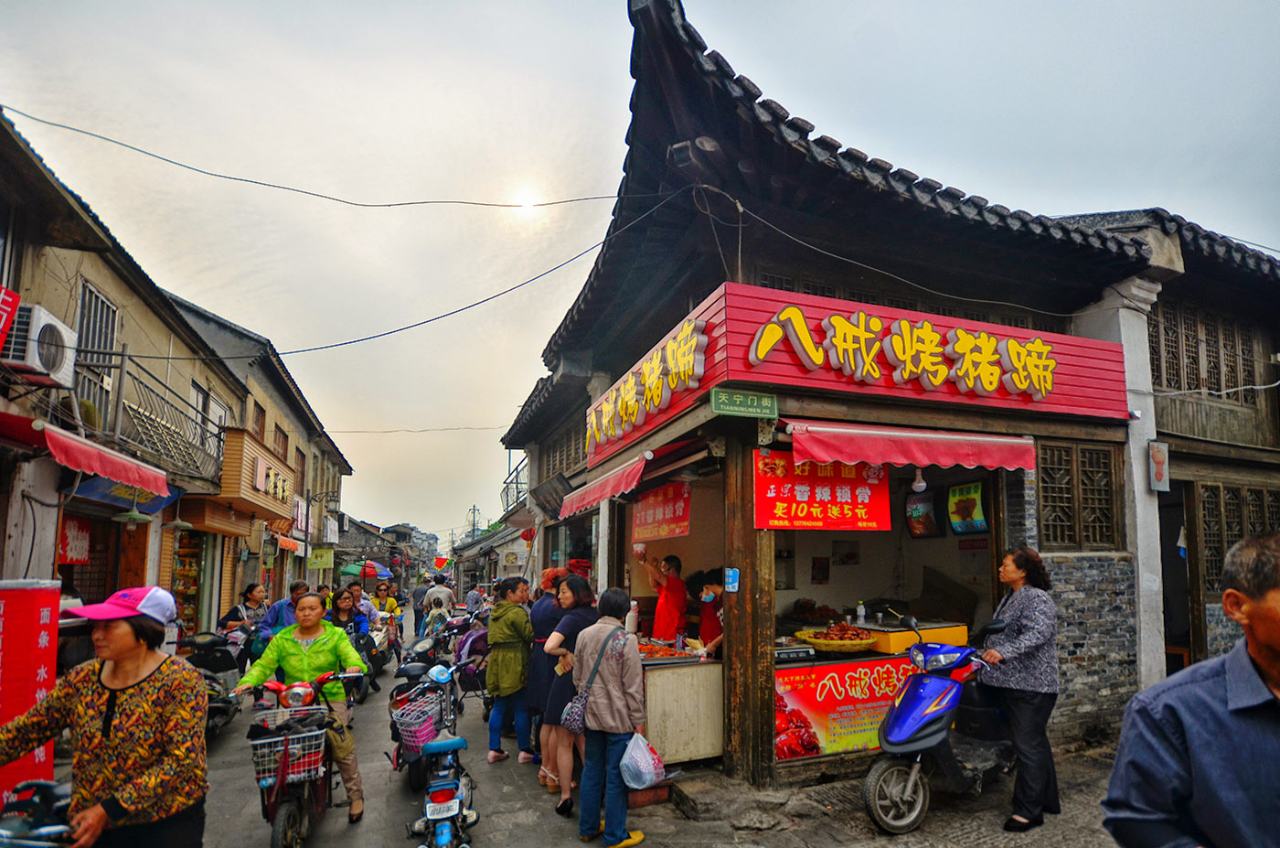 目前街内两侧,各式店家售卖着各种小吃美食,门庭若市,好不热闹。