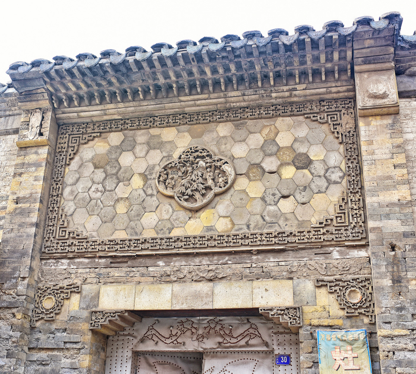 杨总门气势恢宏的建筑和精美的砖刻门楼。