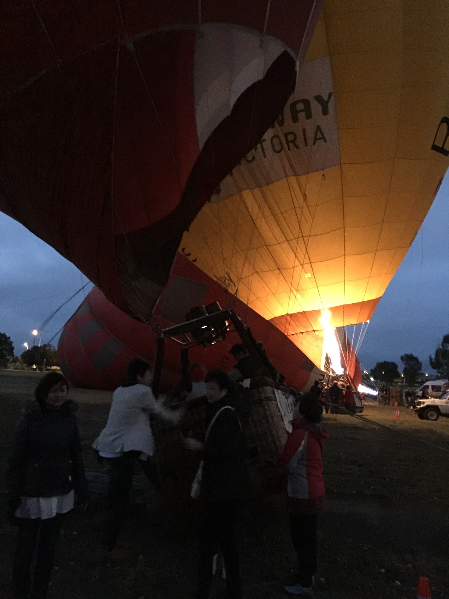 第二天一大早我们就前往城市热气球之旅啦。票子还是在“在别处自由行”里面订的,墨尔本的热气球有好几种,但城市热气球是世界唯一的,觉得比较特别,所以选择了这个。有含早餐的套餐,和不含早餐的,我们选择了不含。热气球项目需要提前一天的晚上拨打电话来确认,是个录音语音电话,大致会讲一些注意事项、酒店接人的时间,这些都很重要,我的英文听力不太好,着实听了两遍才知道了大概情况,中间有不懂的地方还询问了“在别处自由行”的客服mm,她非常热情地告诉我要听哪几项关键信息,好在后面一切还算顺利。