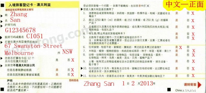 入境单:
