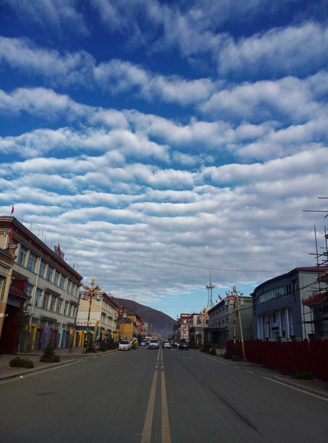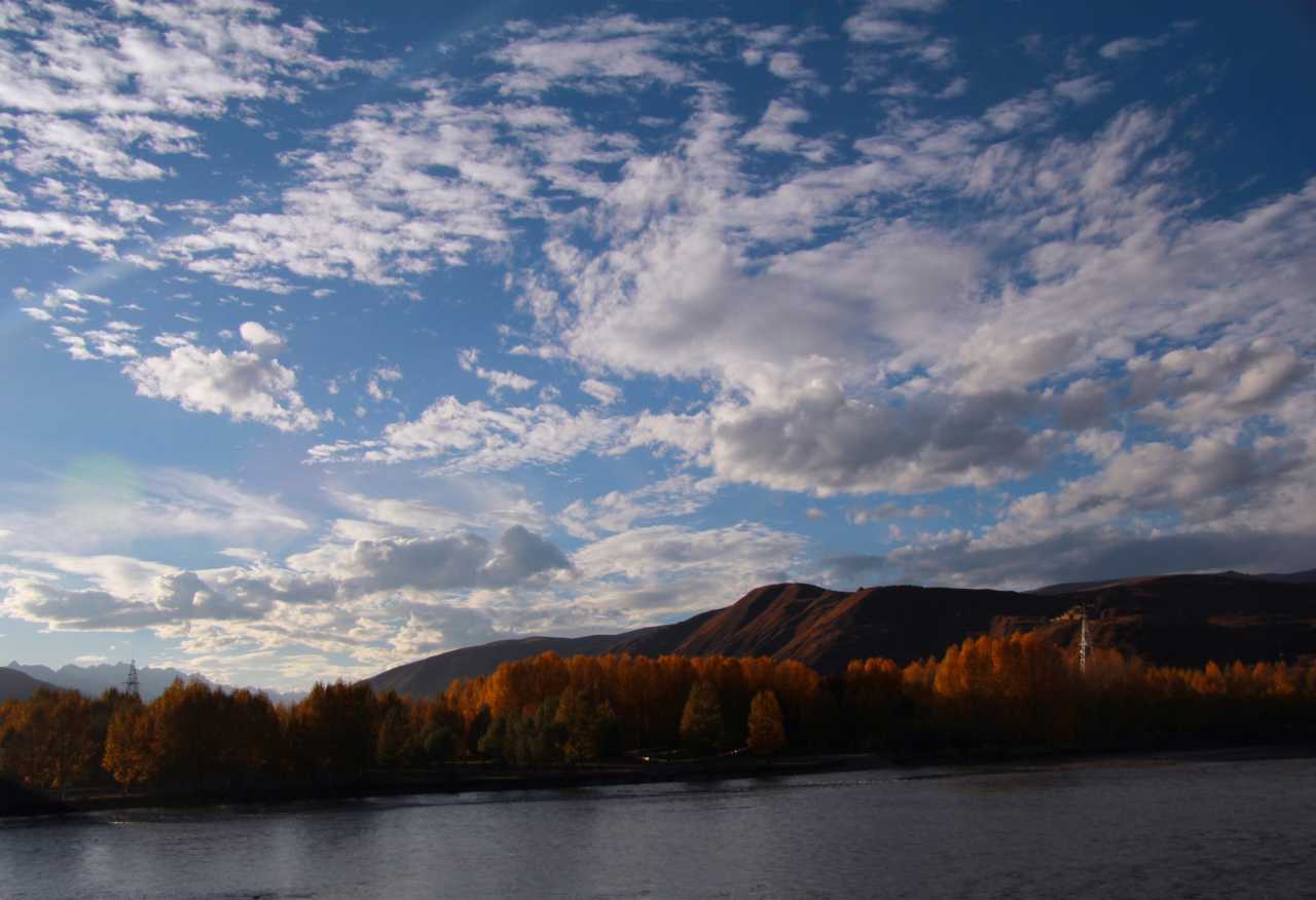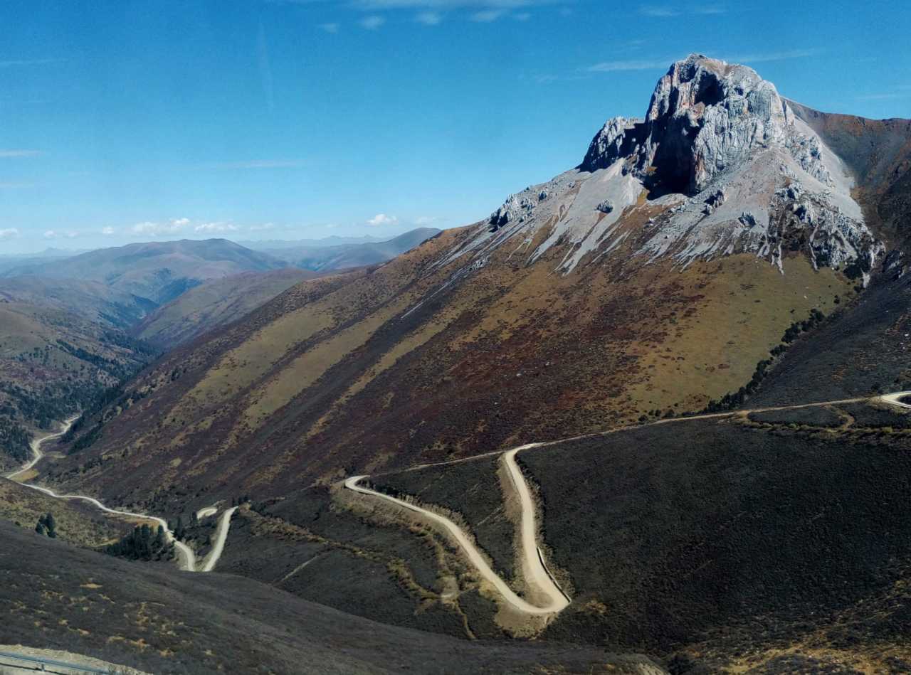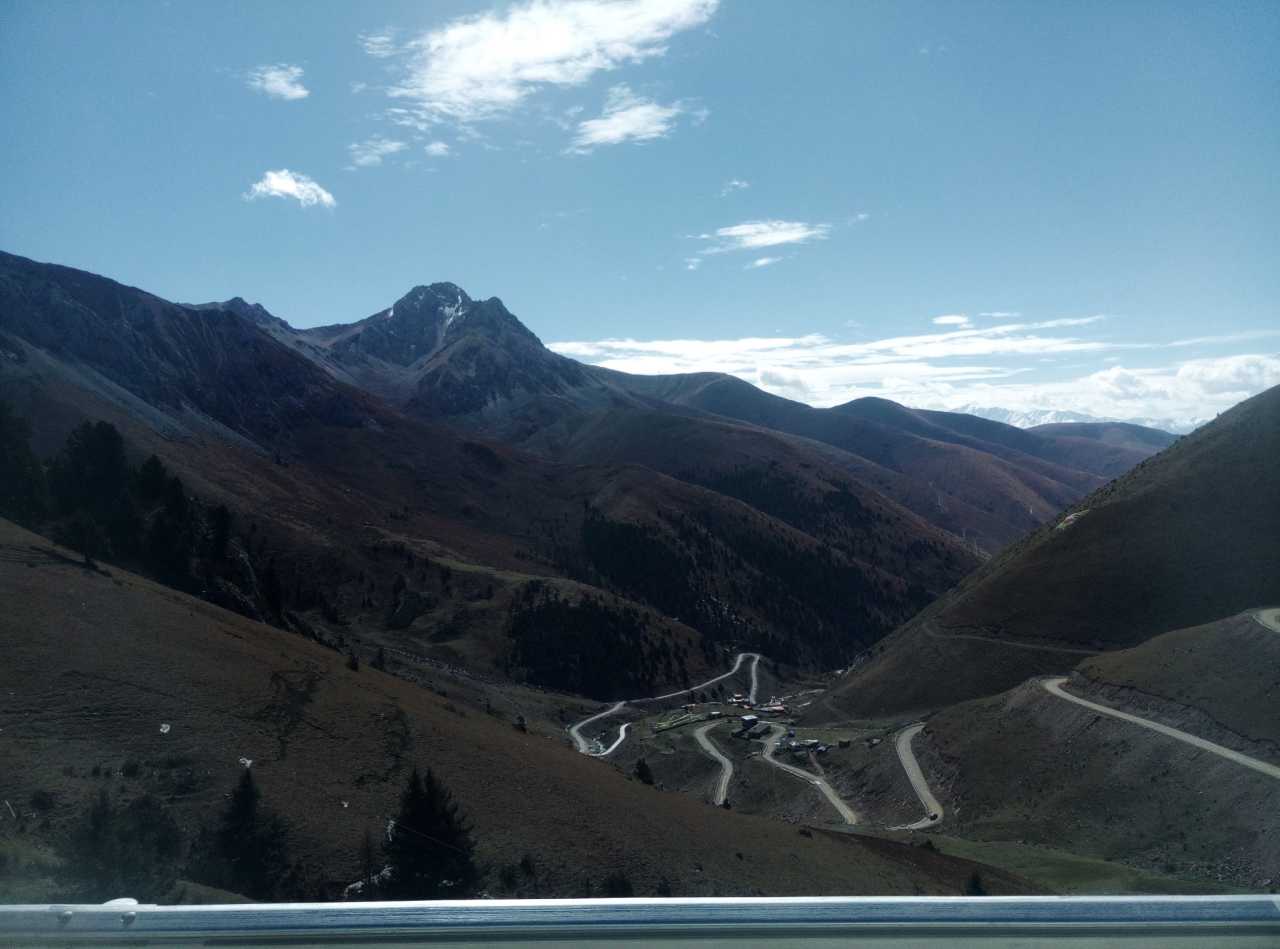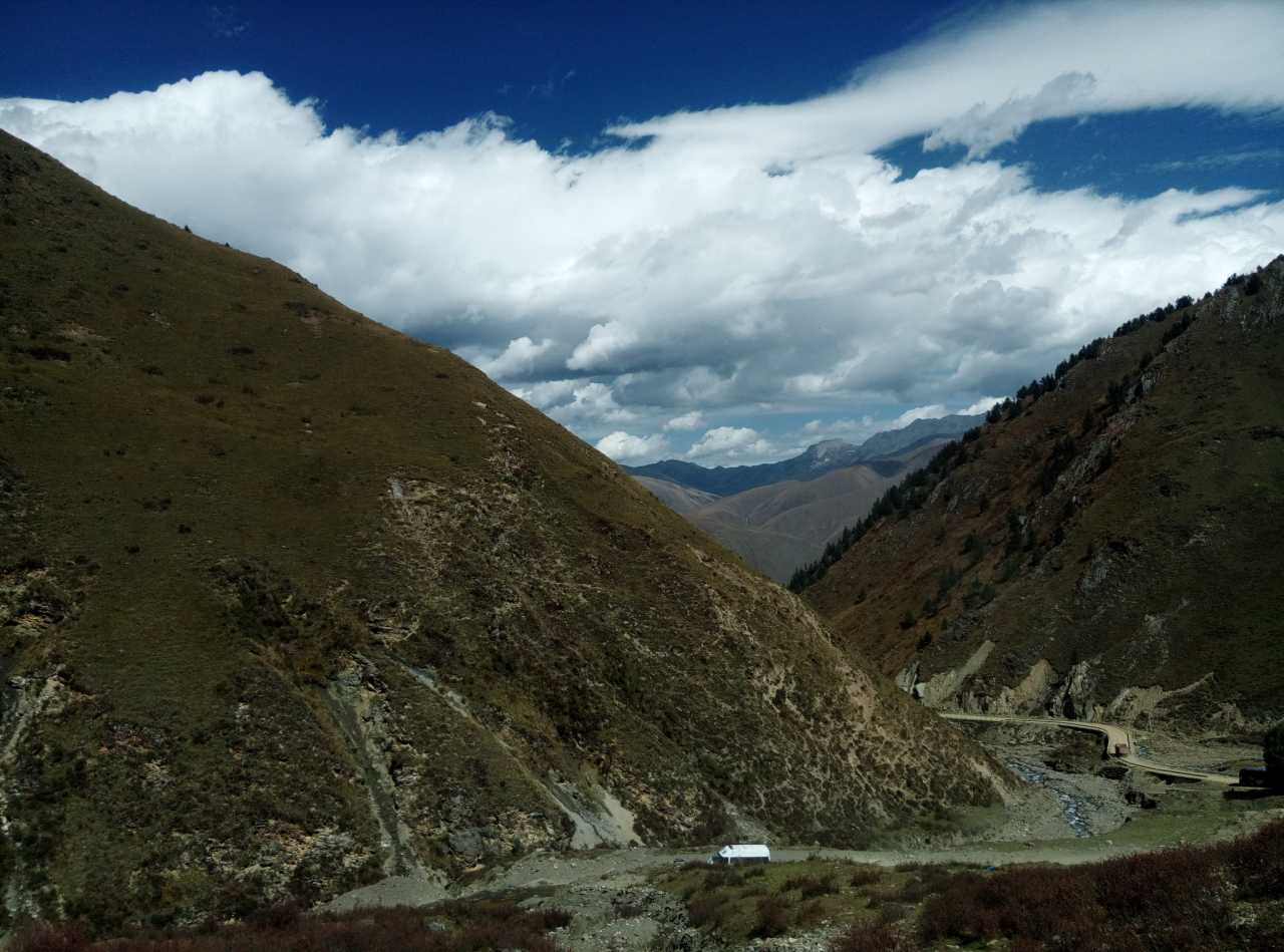 为了能早点到色达县城,我们不得不在五点半出发,一晚上没睡好早上还要早起,我还没吃早餐(有热的路餐,不习惯那么早吃)精神那叫一个萎靡,大约可与瘾君子一比。但是当天慢慢的亮起来,沿途的国道317风光着实让人好好惊艳了一下,高耸的山川,流淌的河水,青黄相接的河谷草甸。天气很好,天好蓝好蓝云好白好白,心上忽然升起了小太阳,莫名其妙的高兴,不管之后的路况多不好,期间还经过堵车,统统影响不了我的心情了。晚上八点才到的酒店,一共三百七十公里多点的路程,足足十几个小时,看到酒店好亲切哪。接待我们的是个十五不到的小姑娘,很热心的帮我搬行李,实在不好意思就自己动手搬了,一口气搬到二楼,呵呵结果我悲剧了,立马起了轻微的高原反应。在房间休息到八点半起来吃饭,这饭一直吃到九点半(因为饭菜熟不了)。也许是因为高原反应,一直睡不了觉,头晕到十一点多才有点好转(不曾吃药)。(照片与下面的在路上差不多就不发了)