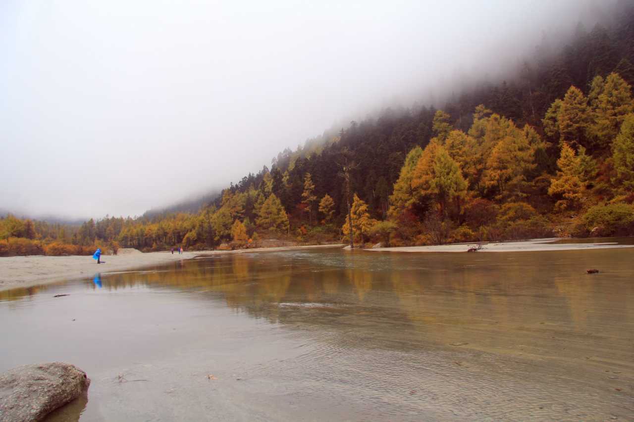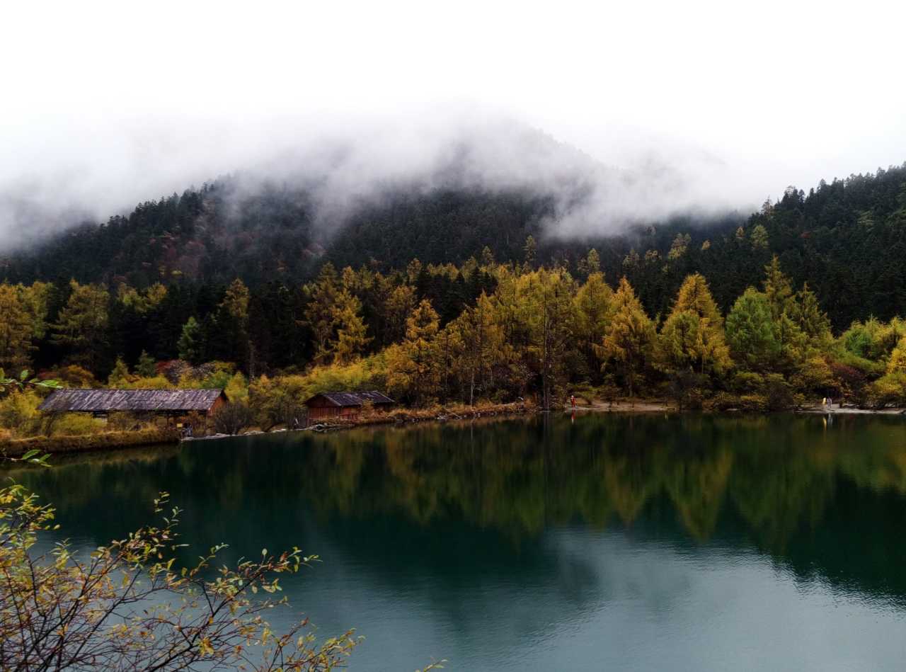 毕棚沟目前来说不是个热门的景点,不能自己开车进去,为了适应一下高原也没打算徒步,坐景区的电瓶车进去的。毕棚沟的环境还是不错的,有个沟壑的树上长满了松萝,随风飘摇很漂亮,很可惜电瓶车不停。在磐羊湖下车时微雨细风,温度还能接受,但是山风一起,就开始哆嗦,冻得流鼻水了都,实在是受不了,走马观花的看了一下就走了,没有走完所有的景点。
