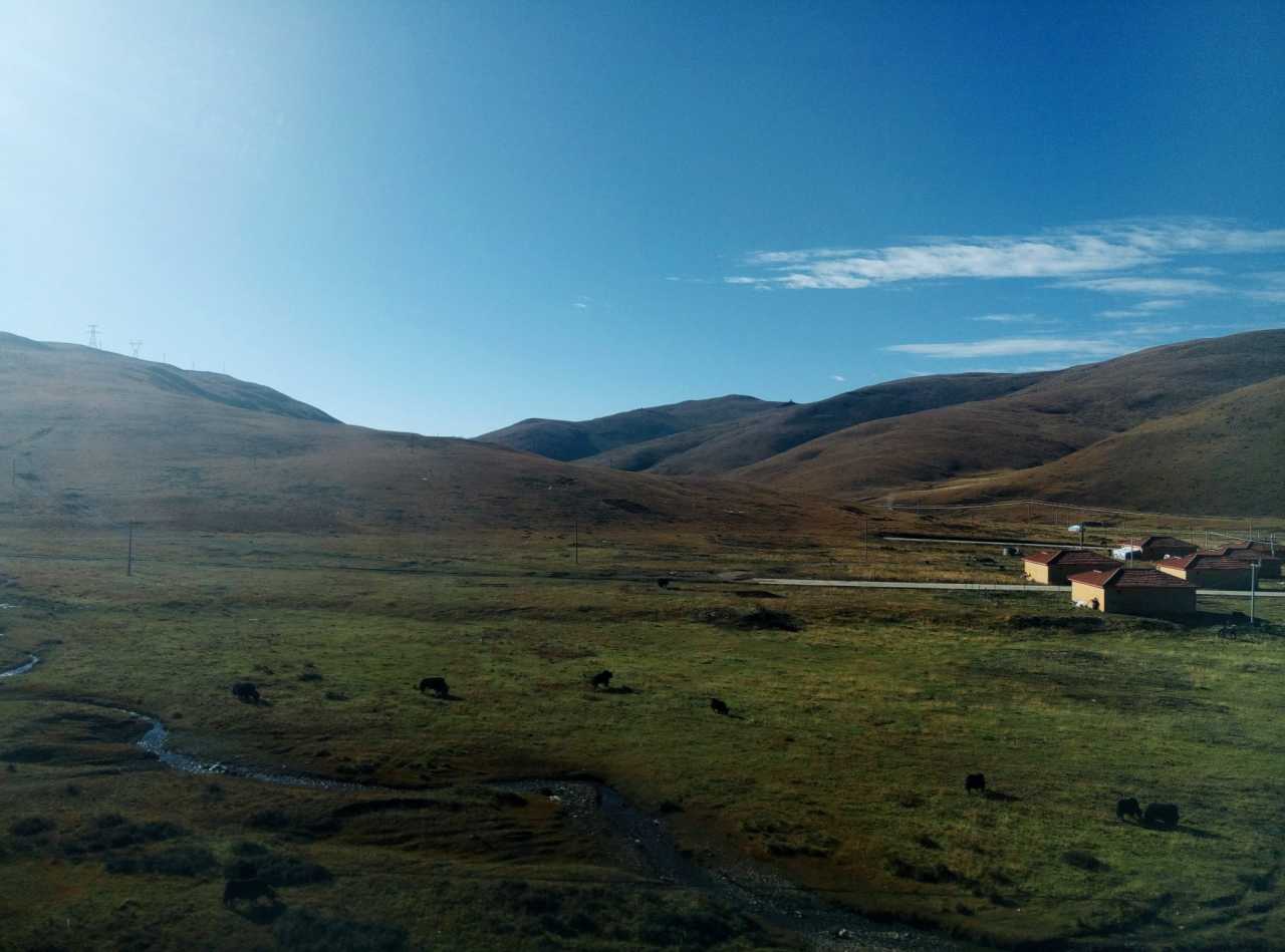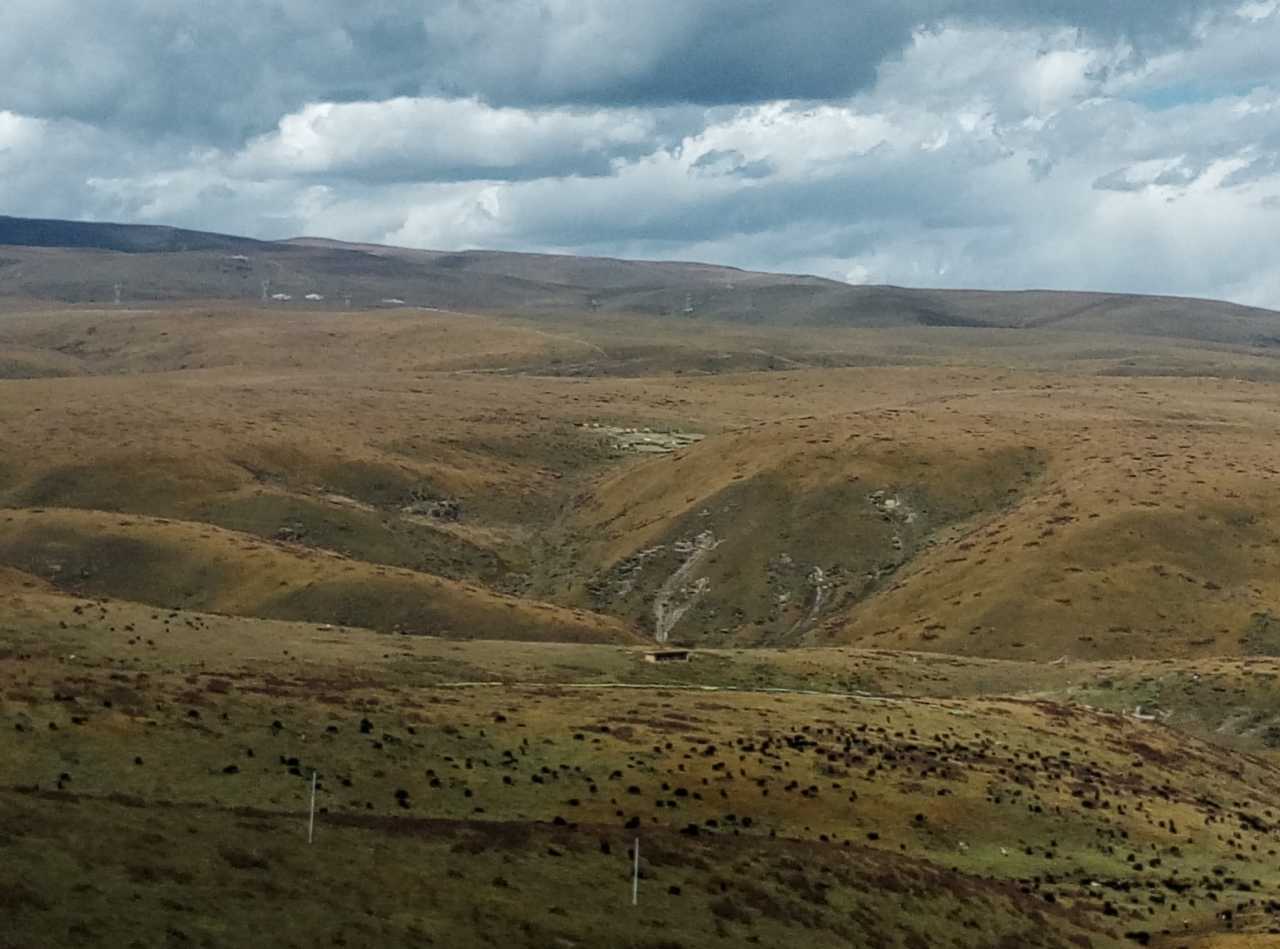 黑色的小点点是牦牛