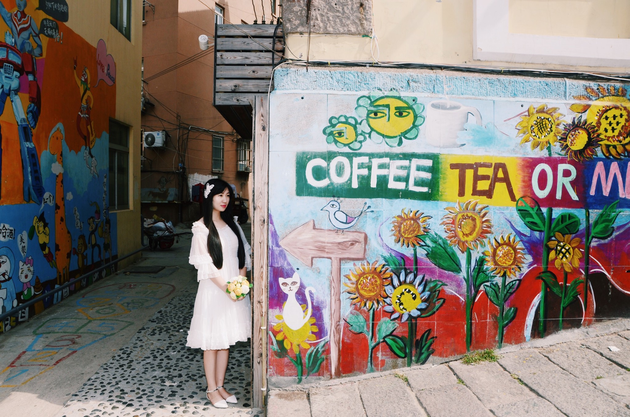 即将迈入25岁高寿的潘少女仍旧热爱白长裙、蕾丝花边、蝴蝶发卡这些年轻小姑娘爱的东西,所以总是恬不知耻买回来一大堆。虽然这次出行只有短短两天完整的时间,潘少女还是带了3条裙子和1条裤子,大湿给我这份执着跪得膝盖已烂。为了配合教堂元素我还带了一个捧花,可谓神器,后文中会出现。美景自然要配美衣,运动鞋虽然舒服得不行行,但是奈何它丑,所以潘奶奶在青岛就穿着跟神经病一样的衣服和尖头鞋爬礁石、踩沙滩、走坡坡......