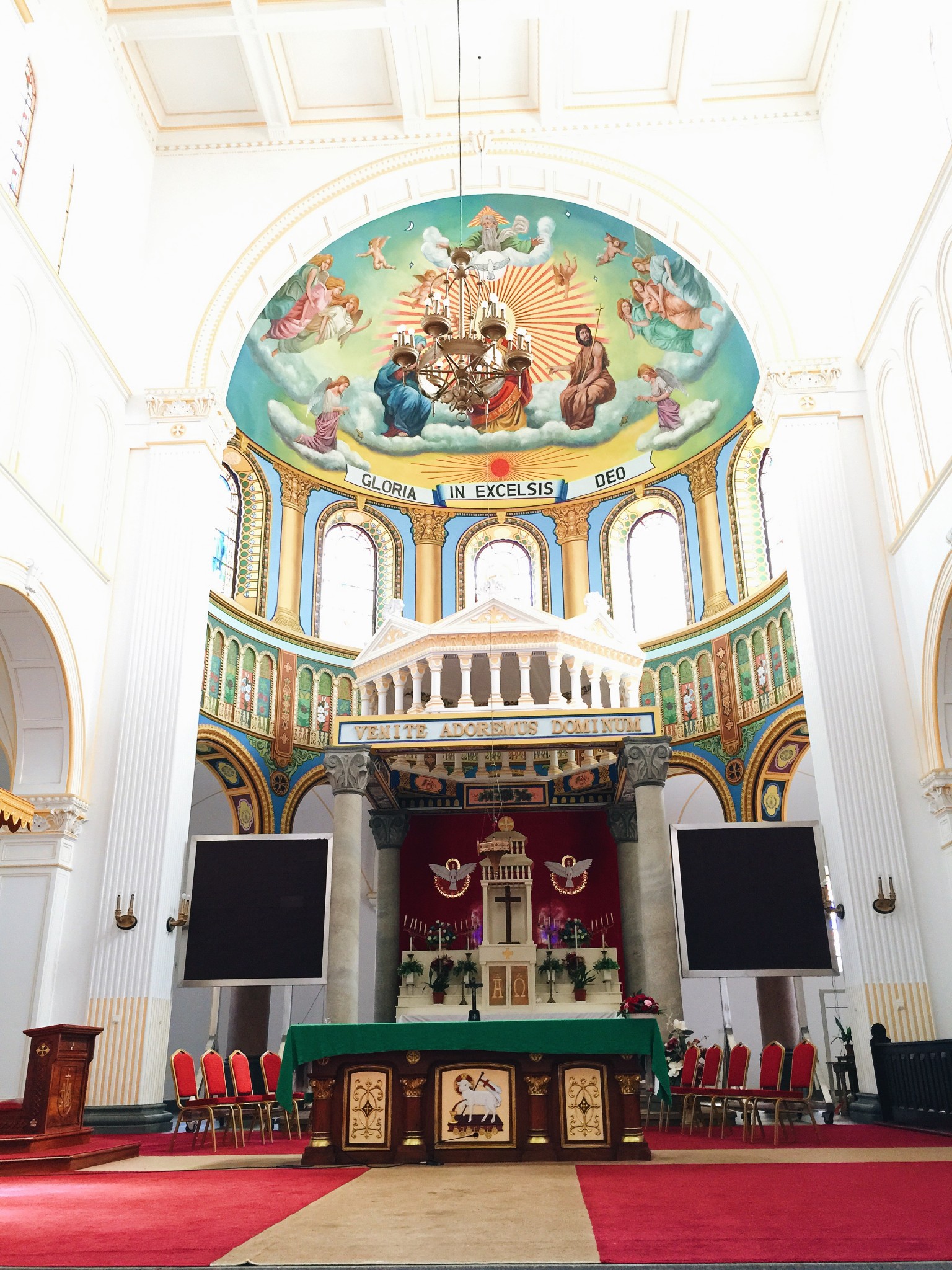 p.s每逢周日8:00-9:00教堂会做主日弥撒,非教徒也可以参与,我们时间没有对上。弥撒时间不可以在教堂里跑来跑去到处参观,静静地坐在后排,不能大声喧哗,不要拍照。