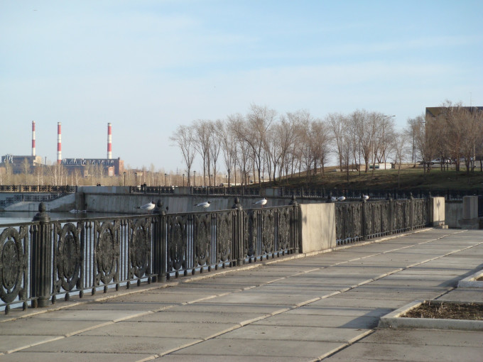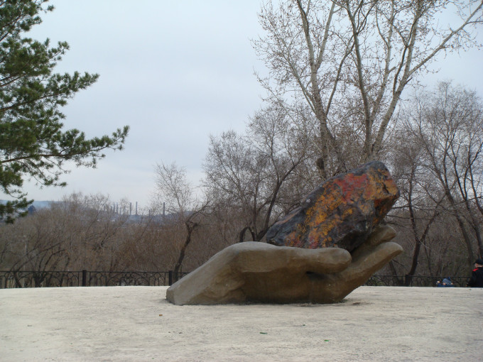 我们住在市区(即西岸),工作在“马钢”(即东岸)。每天早上,我们都要乘车经过乌拉尔河的这座洲界桥,到东岸的企业里工作,晚上再原路返回住地。这座桥上有一个地球形状的雕塑,一侧写着A(Asia),一侧写着E(Europe),中间一条线代表洲界,大家笑称为“早上去亚洲上班,晚上回欧洲睡觉”。我们都很珍惜每天往返于此的时光,总要多看几眼缓缓流淌的河水、河中绿洲上嬉戏的水鸟、岸边休息和玩耍的人们,哦,这就是大名鼎鼎的乌拉尔河。