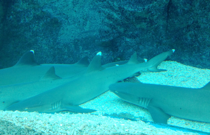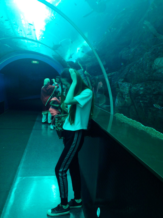 下图是海洋馆里最大的落地窗,大约有三十多米长。生物非常多。据说后面还有一个十分美丽的餐厅。