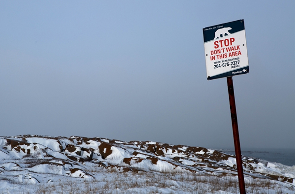 在丘吉尔镇附近的3个露天垃圾场上,有时一天就有40来头北极熊集在那里找食。为了既保护居民不受熊的侵害,也保护熊不受居民的袭击,现在丘吉尔镇对北极熊采取严格的防范措施,在一些进镇路口拦截北极熊。小镇还设有专门的“熊警察”。
