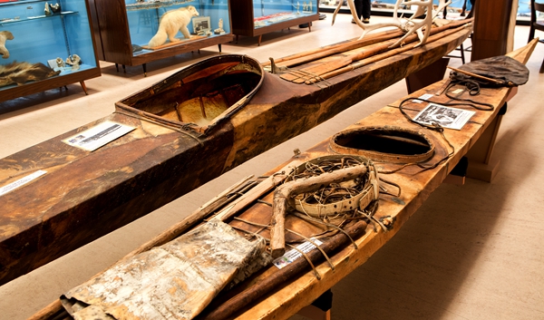 ——爱斯基摩博物馆,展示的爱斯基摩人捕鱼用的船,据说,我们现在的皮划艇就是这个发展而来的,仔细看也有几分神似。