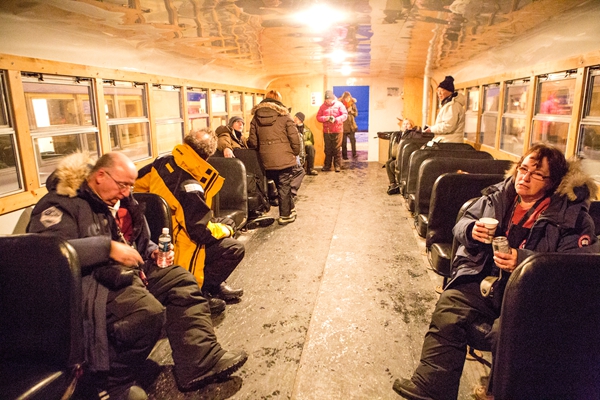 天黑之后,分散自由参观的团友们又集合去我们的最终目的地----位于wapusk国家公园的苔原车客栈,从丘吉尔镇到苔原车客栈要两个多小时,需要先坐大巴,转苔原车到达苔原车客栈,这就是苔原车中转站。在这里上车转到苔原车客栈。