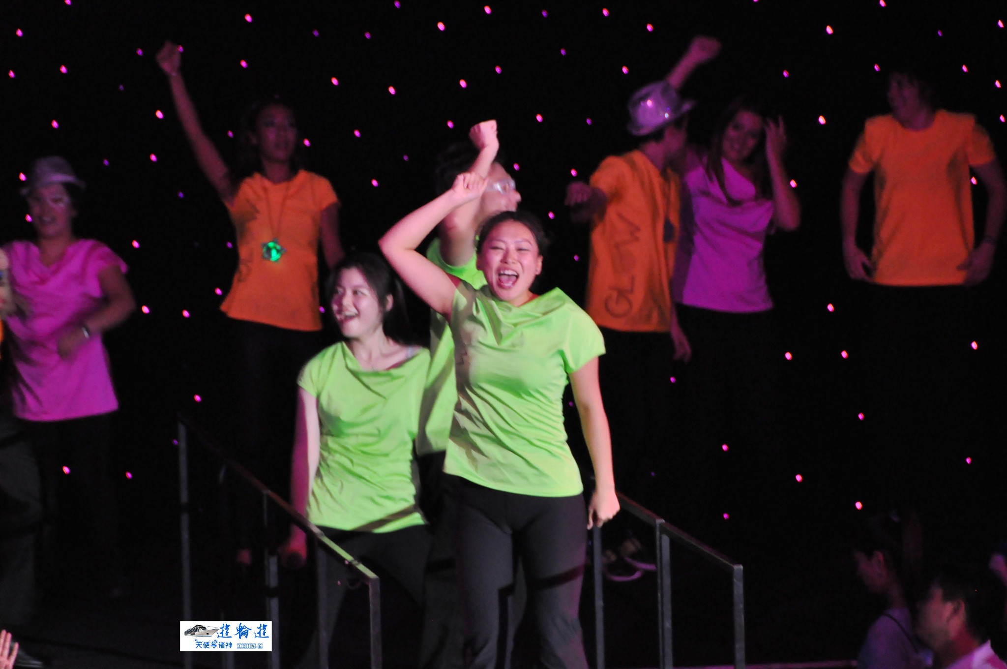 吃好晚餐后,营销部的中外工作人员带大家一起迪斯科。