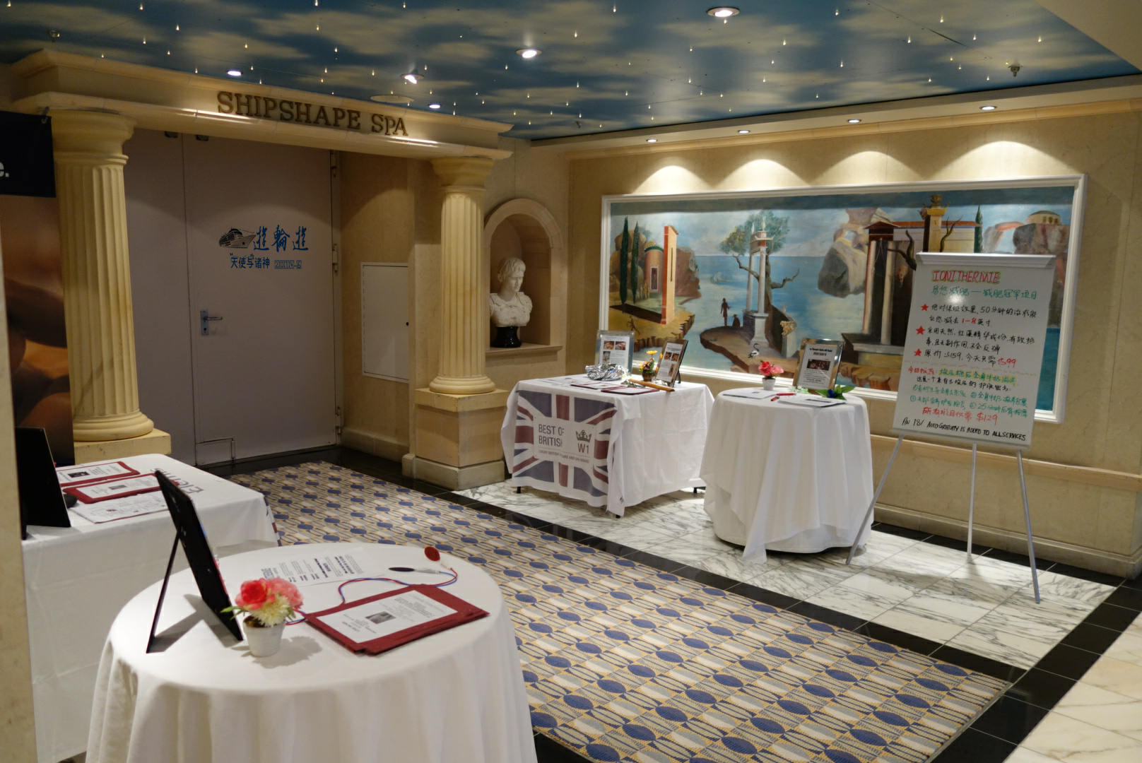 游轮游有个特点就是吃、喝、住在船上。下船游是短暂的。结束了冲绳岛的一日游后,我们又回到船上开始享受了。先舒舒服服泡个水,去除疲乏。