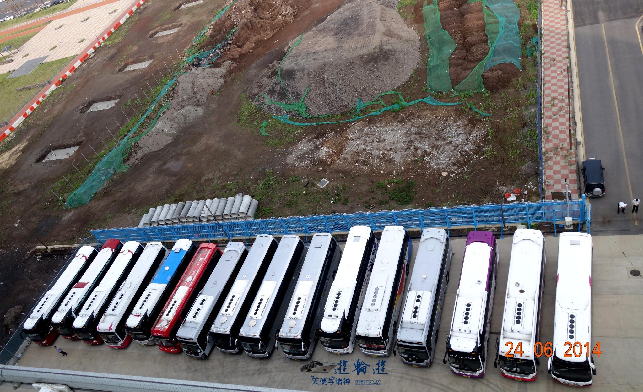 瞧,浩浩荡荡接我们的大巴已就绪。
