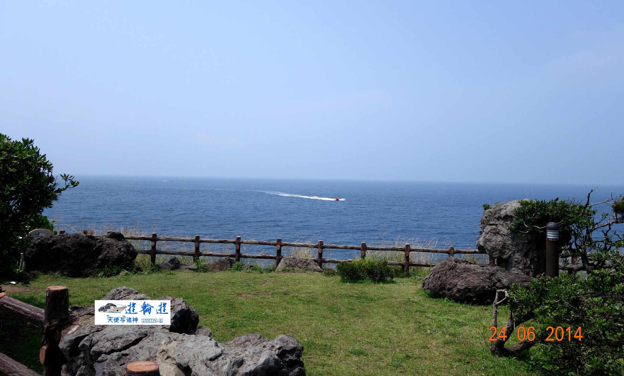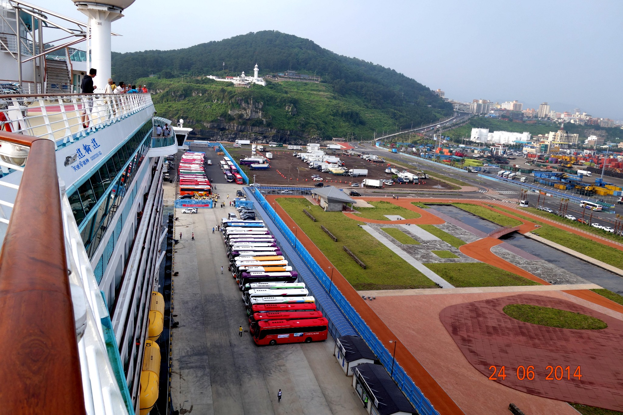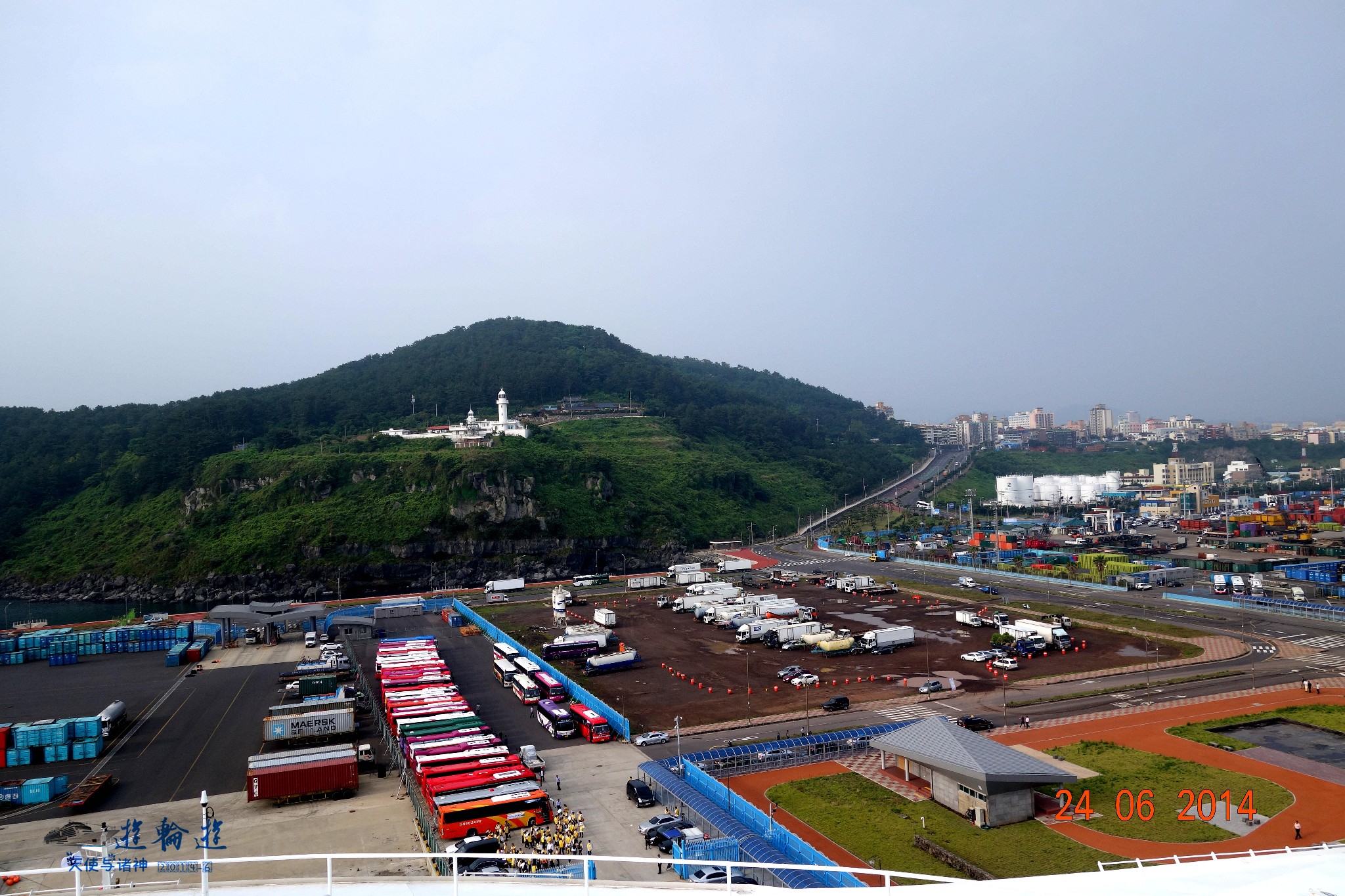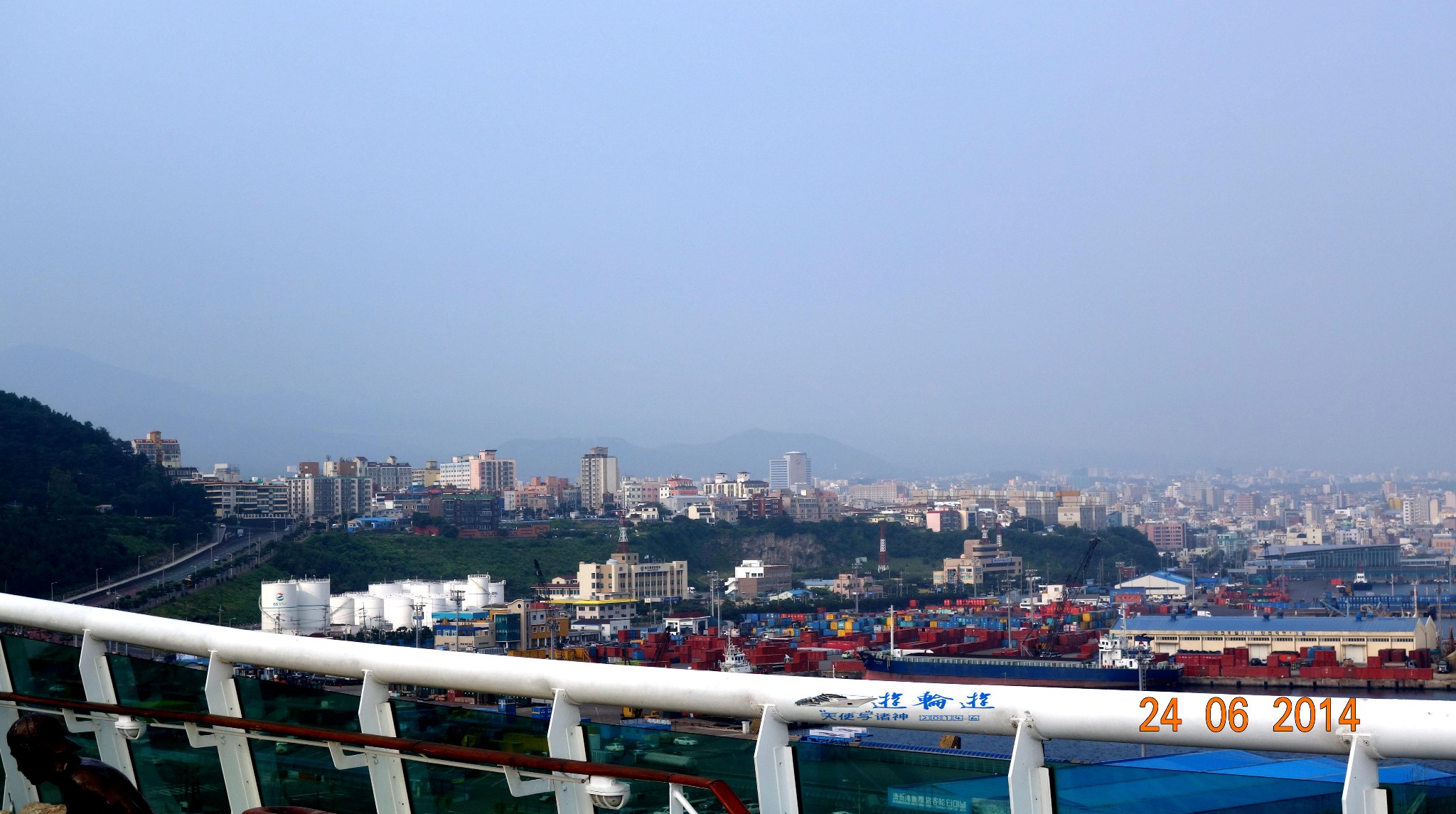 站在船上就能看到济州市远景。