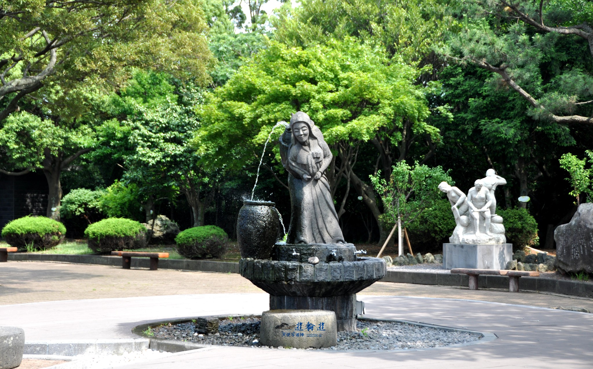 这个雕塑表现济州岛妇女生活的场景。