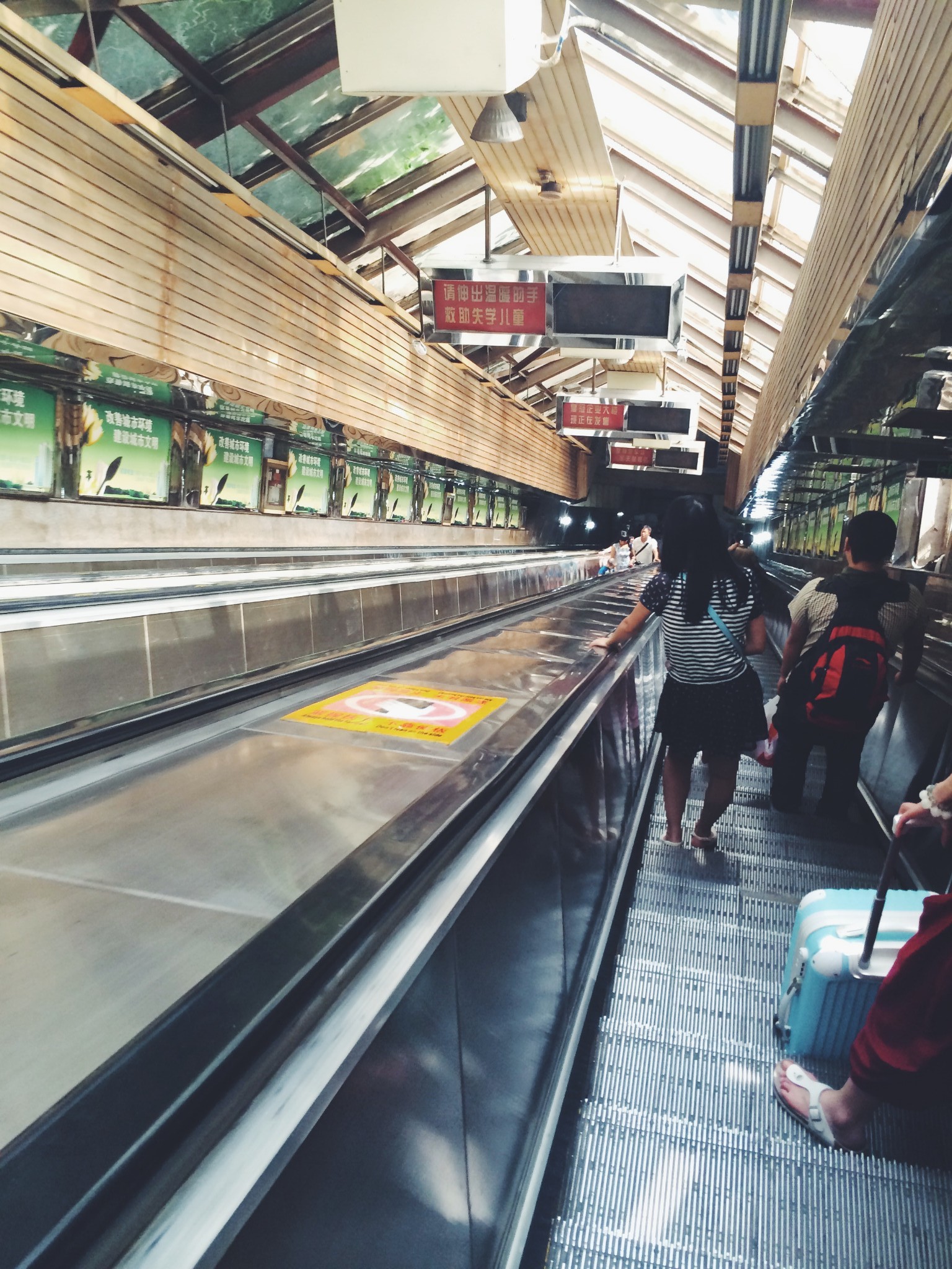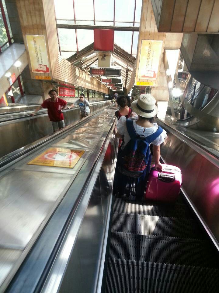 出发了!成都到重庆的动车还是很方便的,不过7月的重庆真的热炸了,动车是到重庆北站,然后坐轻轨去菜园坝火车站,中途经过一个两路口大扶梯,各种酷炫!