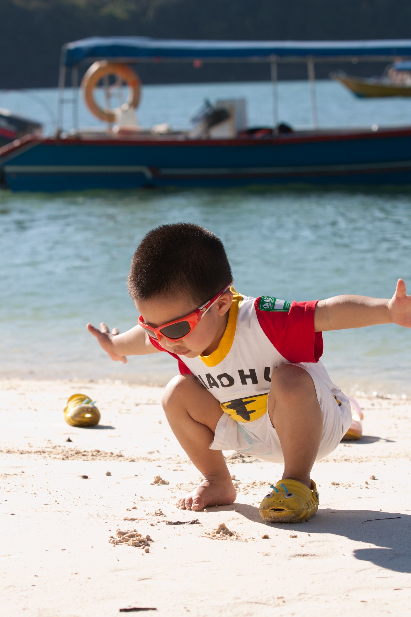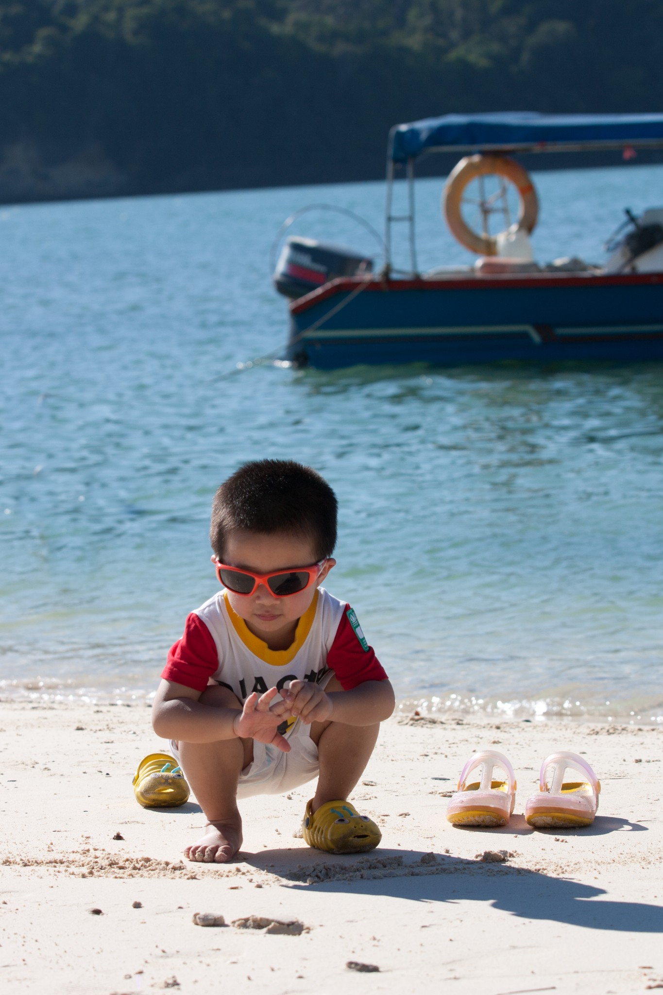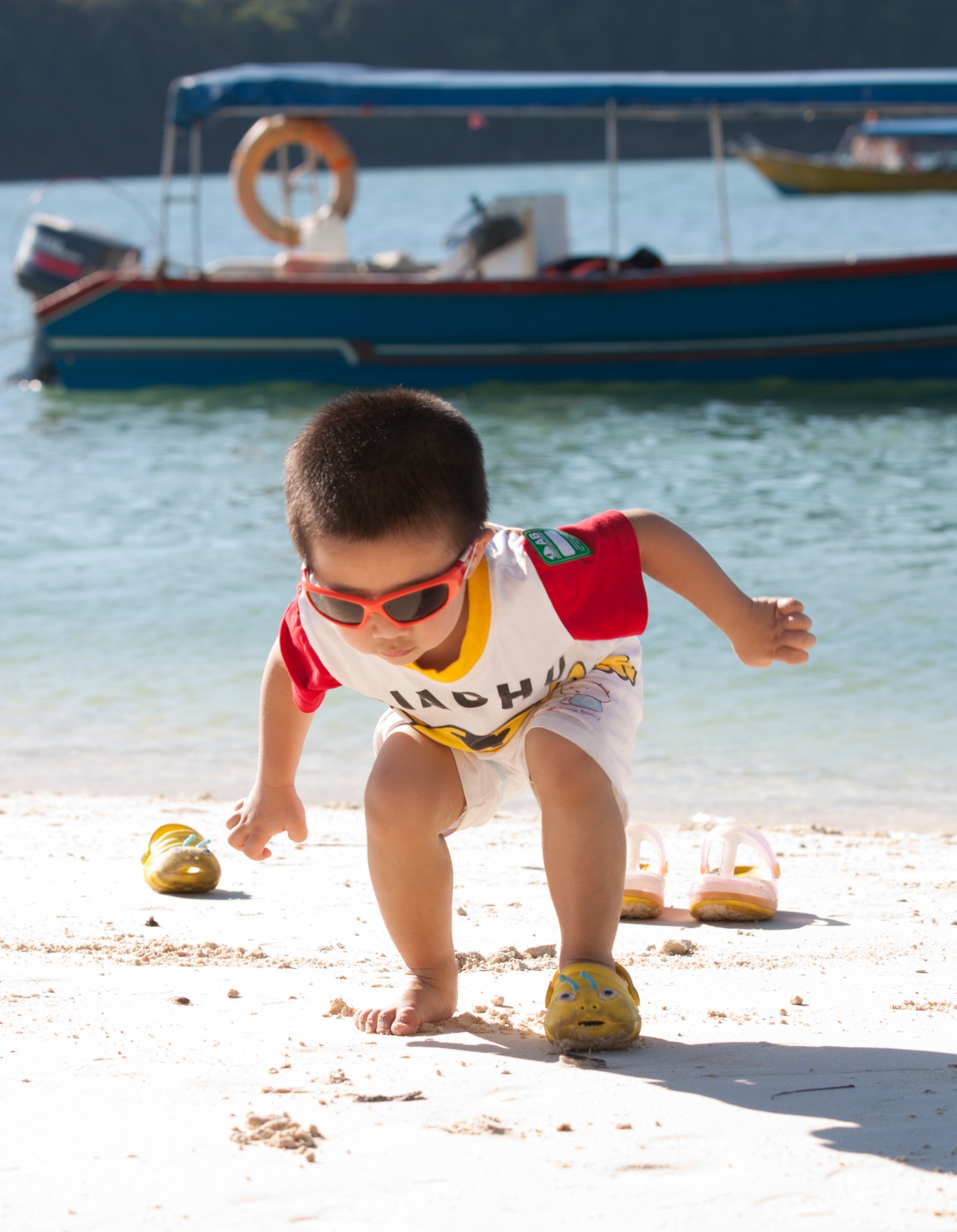 第一站湿米岛 。沙滩还可以,海水也还不错。儿子看到沙滩和海水就情不自禁的玩耍开了。