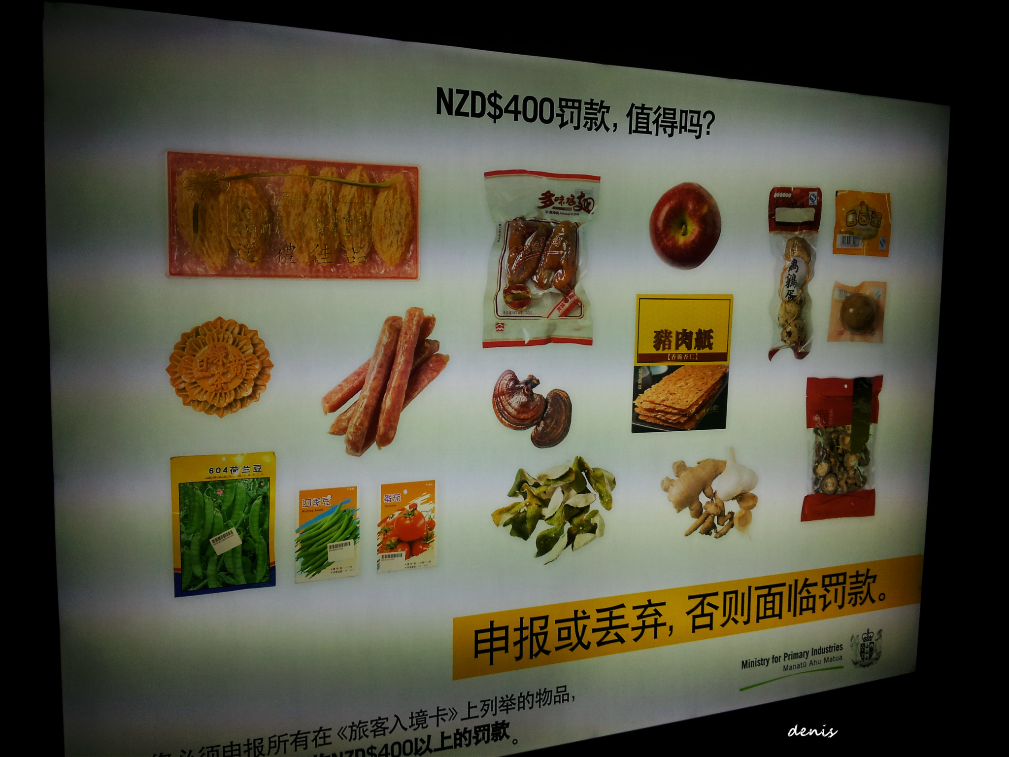 关于入境:新西兰对动植物的入境非常严格,不时有警犬在行李箱转盘上闻来闻去 ,入境走廊张贴着违禁品图片,还有两个大垃圾桶
