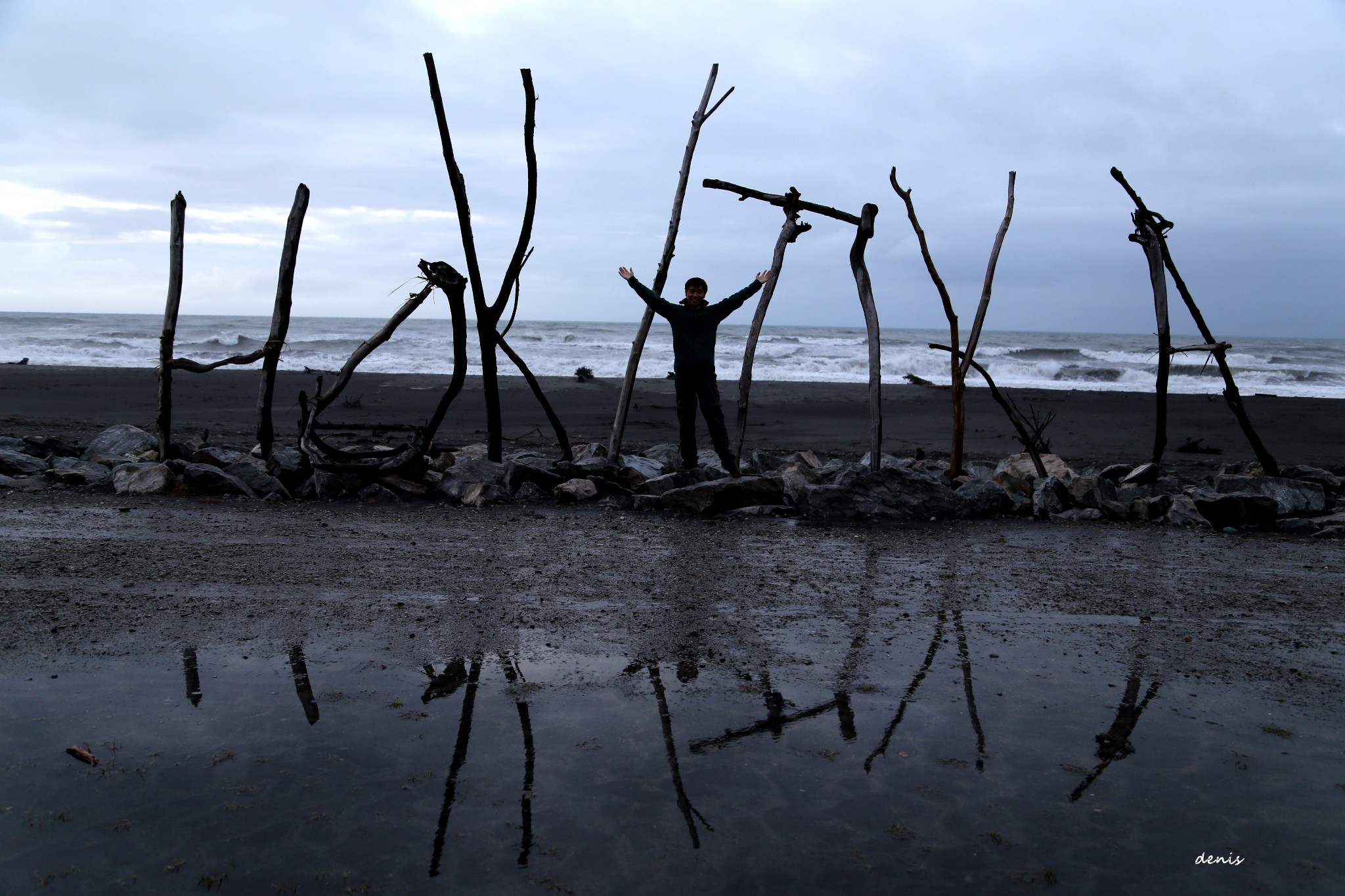 漫步霍基蒂卡海岸线,岸边有被漂泊而来的朽木、枯枝堆砌成的霍基蒂卡英文字母,晚上去Glow Worm Dell