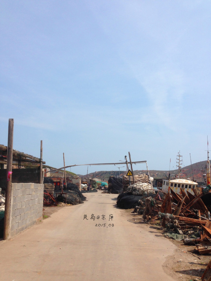 一路往前走,路两旁都是堆放着些渔网或者船停泊用的插头。