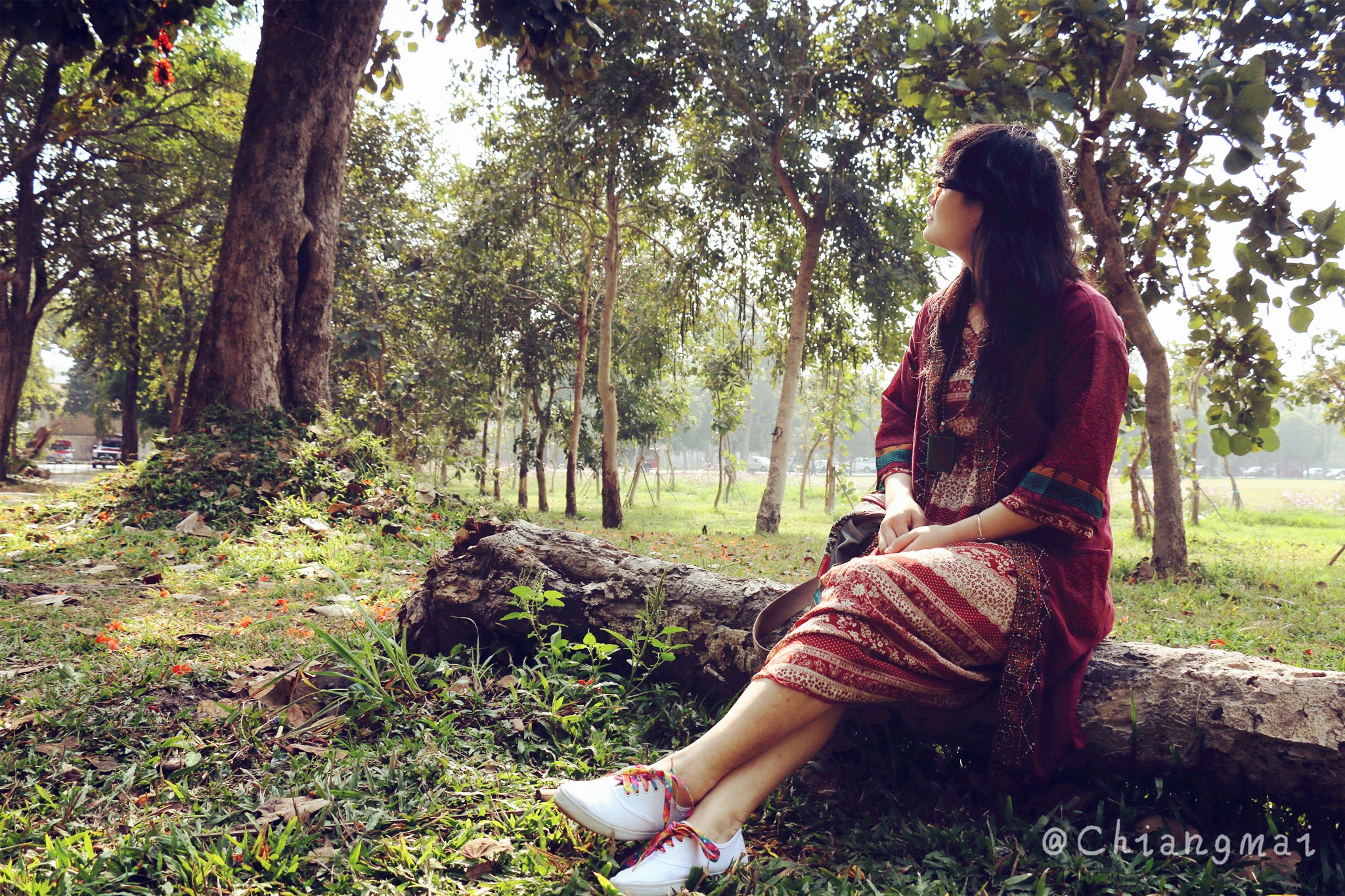 第一次到清迈的时候清迈大学还没有实行游客管理,那时候在清迈校园随便游荡,而第二次来就只能在清迈大学一进校门的地方购票,坐游览车逛一圈,会在湖边停下来让大家拍照。我们游览完毕后在乘坐游览车旁边的空地上玩了一会。