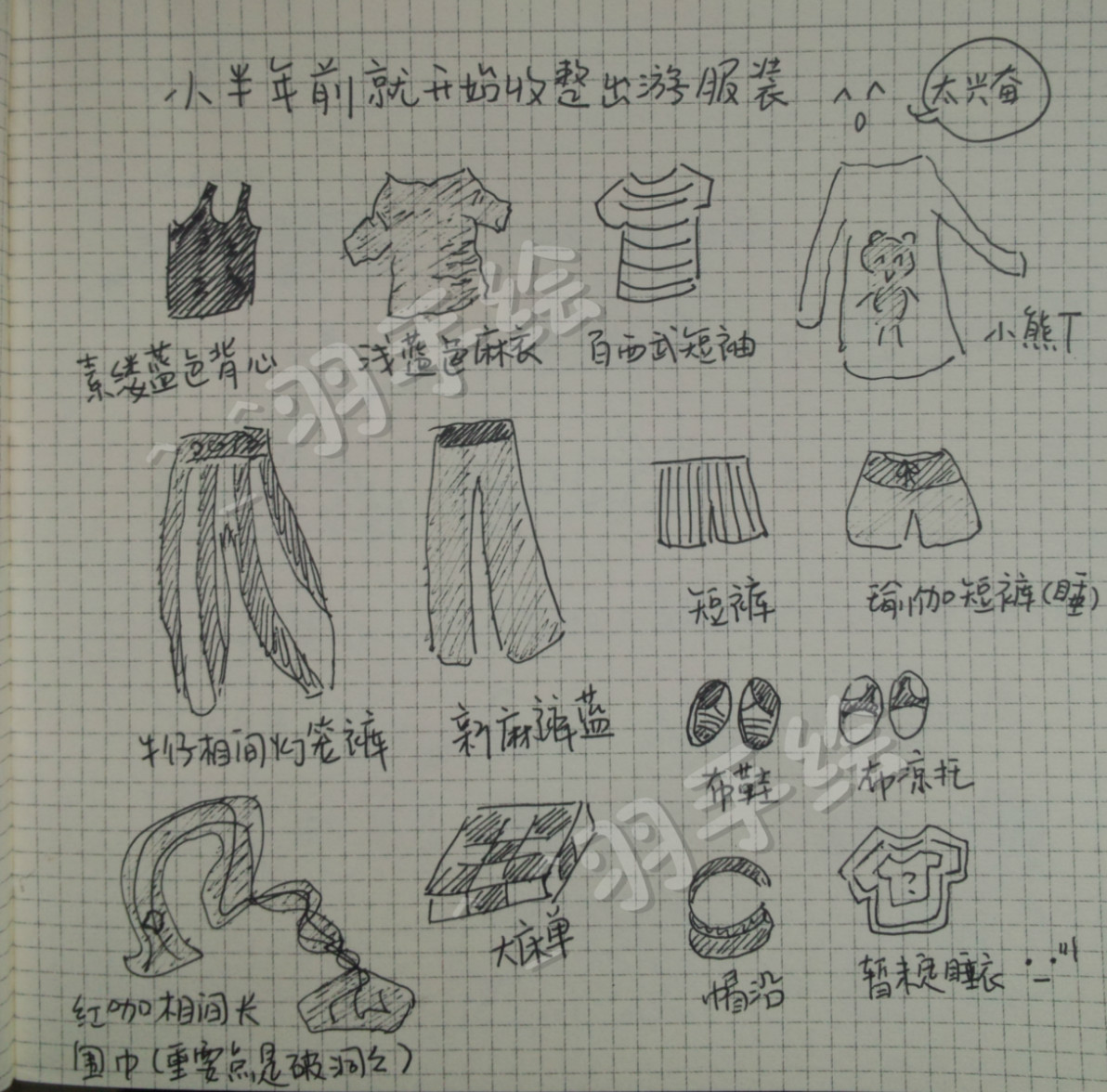 羽最擅长的衣物准备,提前在家里都准备好所有的搭配