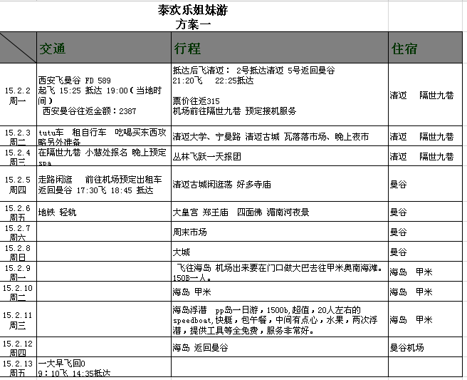 习惯性的把所有资料电子版分类整理好,打包发给所有团员,护照电子版存在云端,各种预定信息也都存在云端,提前进行网上值机,打印好登机牌。国际是亚航,泰国国内全程鸟航,为什么是鸟航呢,因为有行李有餐还便宜哦。