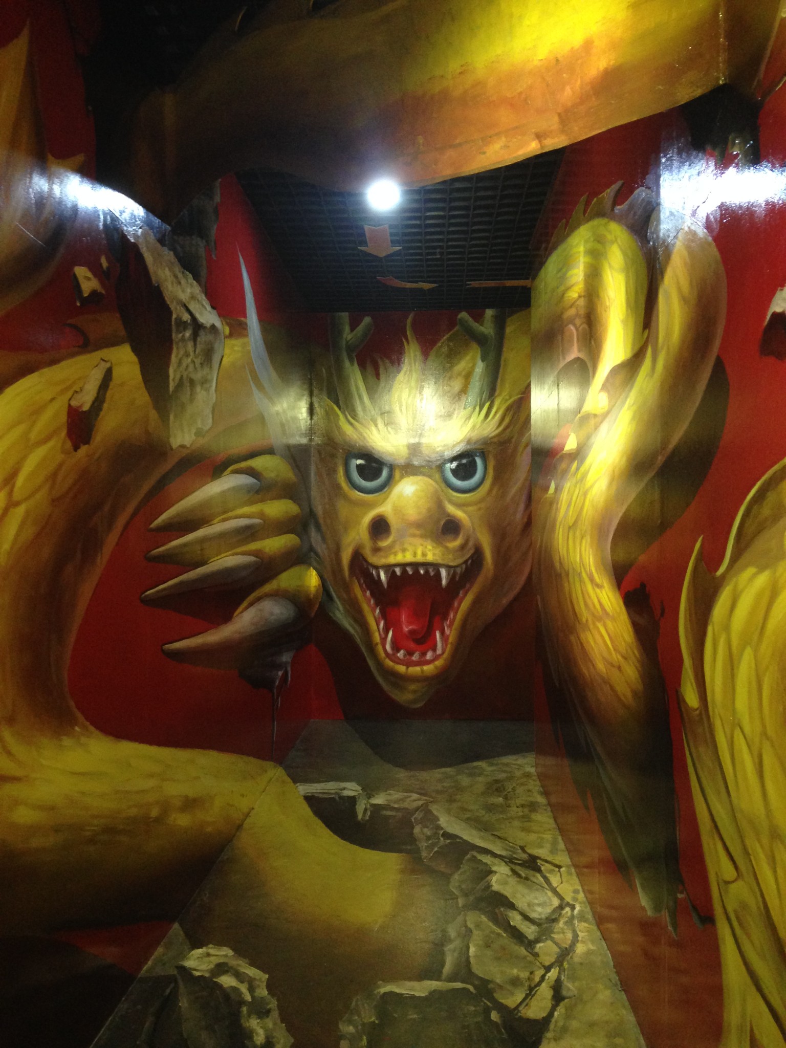 接着去了爱来魔相艺术馆,主要的设计理念就是把最新的魔幻视觉作品和画家们的现代美术作品结合展出,催生了一个新的文化艺术空间。使平面画具有立体感的神奇幻觉,体验美术馆主题,体验由高端数字影像生成假想现实的主题。在生活空间的每一处都有运用科学原理生成的像魔术一样的幻觉空间,在传统法式野外庭院里用青铜和石雕造型来表现故事中的一个场景。