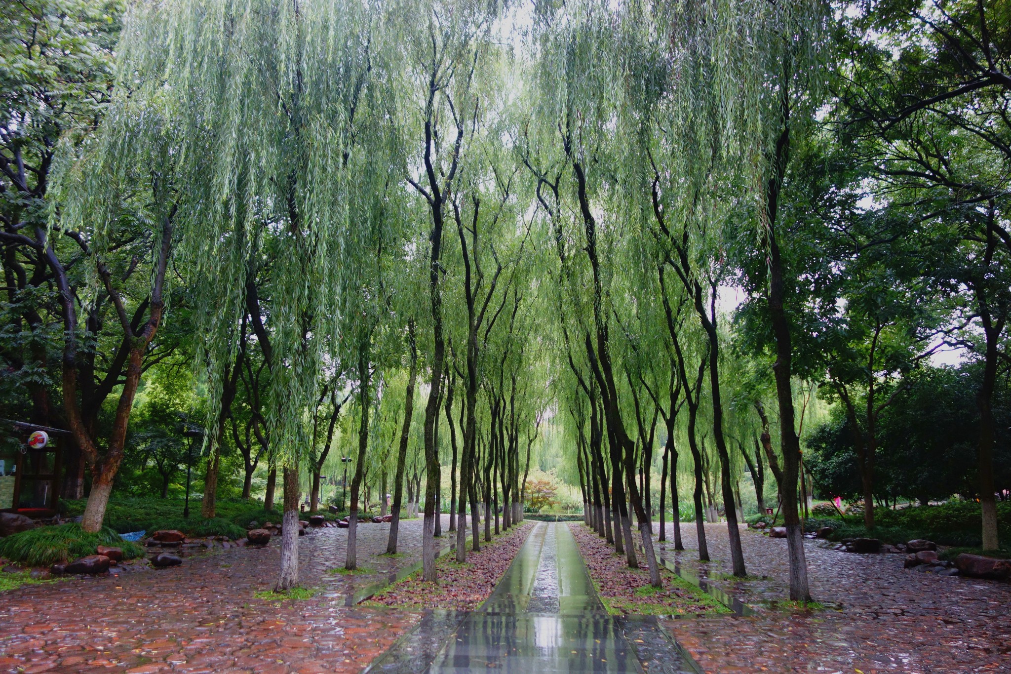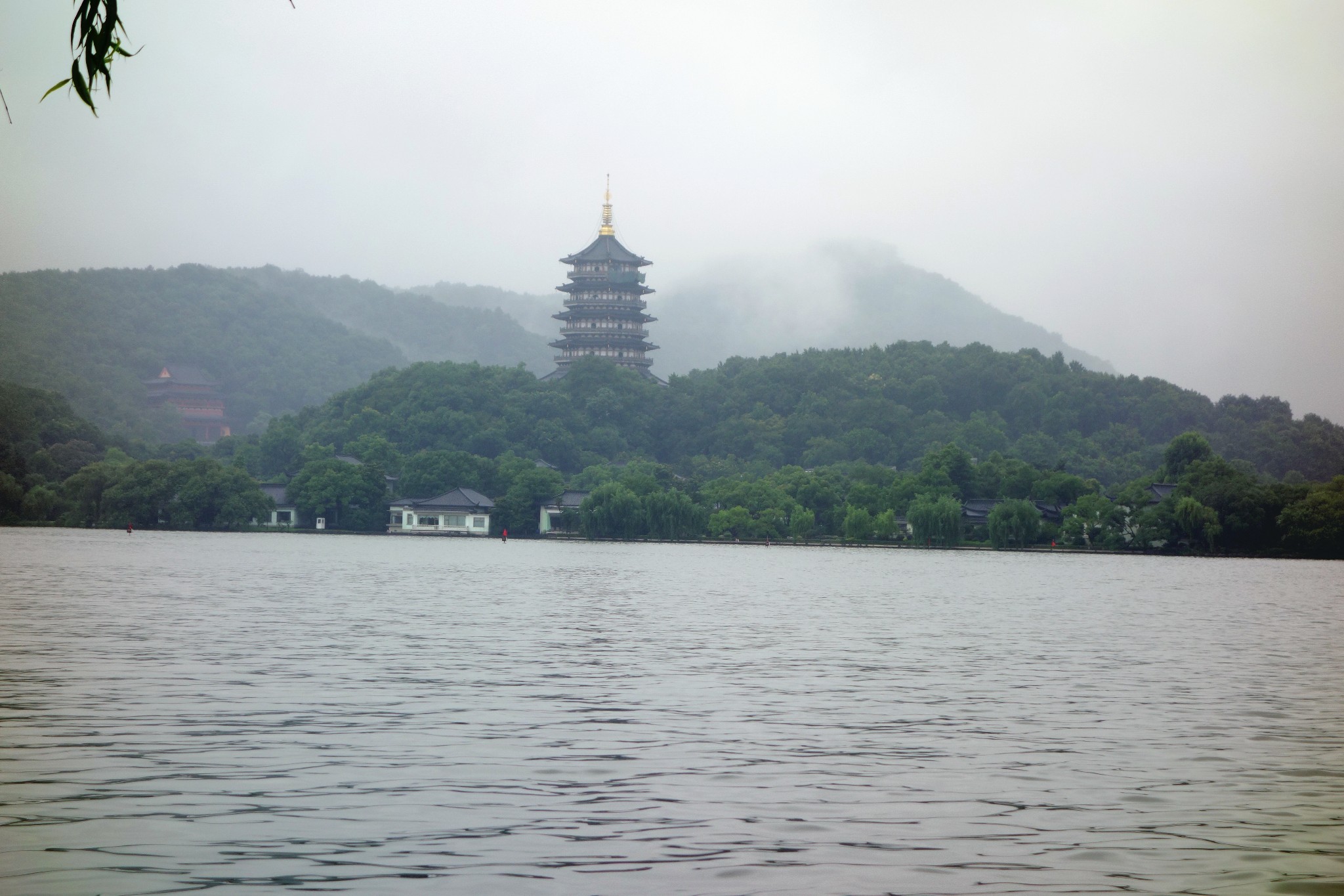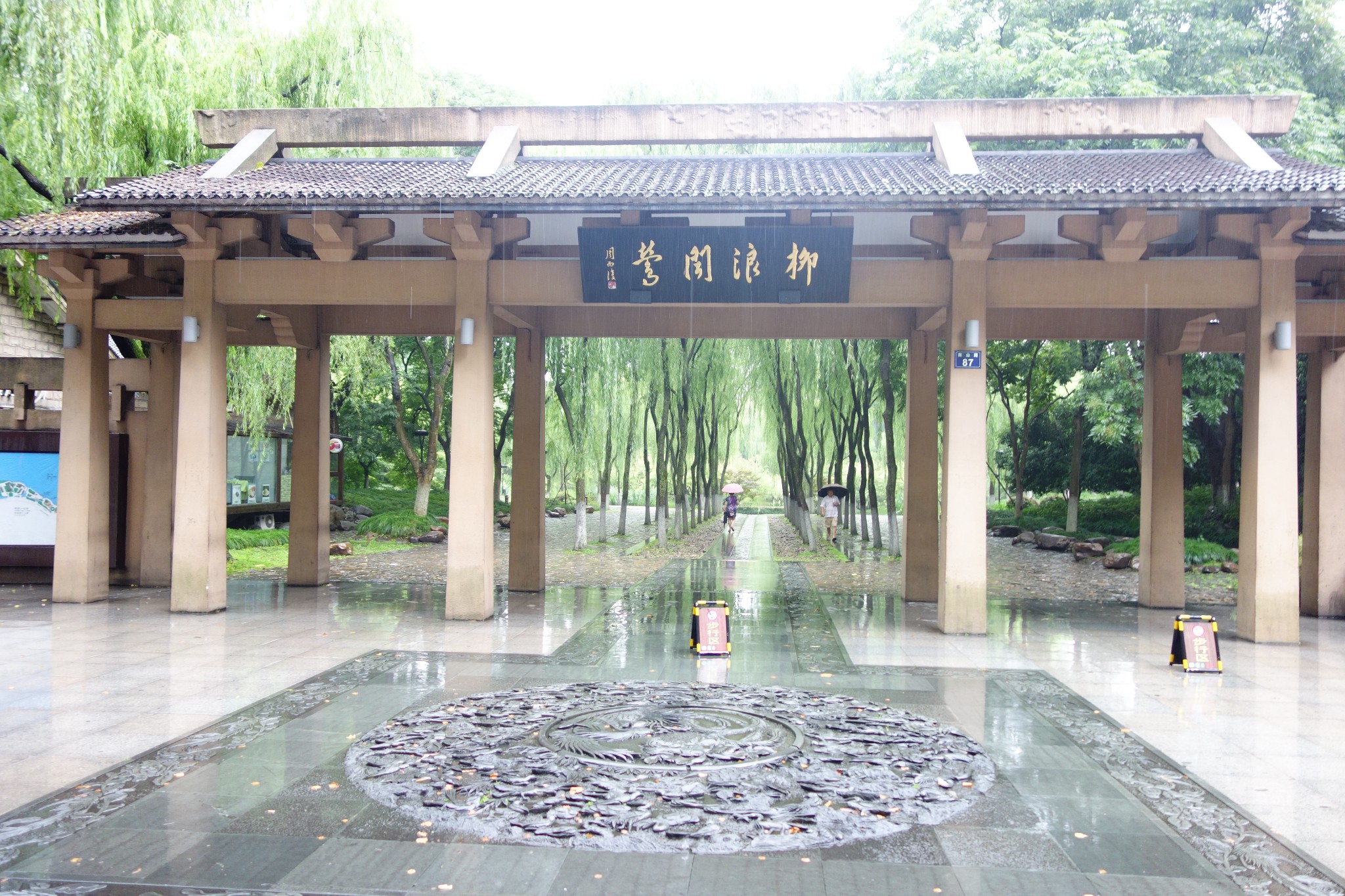 那天早上出发的时候天空下着瓢泼大雨,搭着公车全身都弄湿了。下公车的时候看不到西湖的标志,便在公交站问了一位老伯,老伯指着不远处说,这里就是了呀。我们望过去,才看到柳浪闻莺四个字,原来这儿就是西湖啊。放眼望过去都是一排排柳树,随着风摆动着柳枝,在烟雨中看,别有一番滋味。