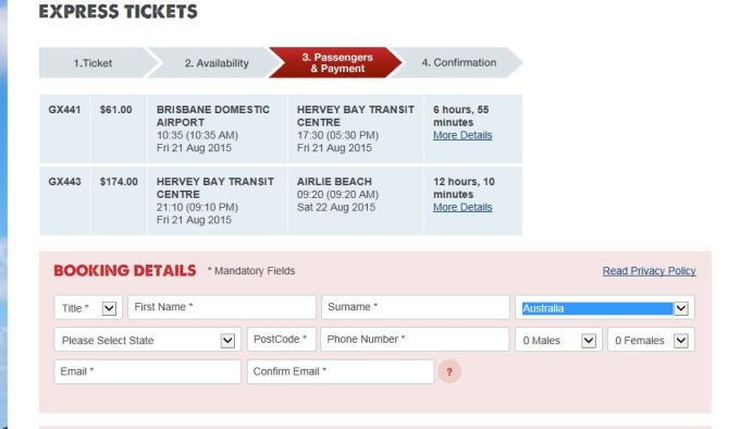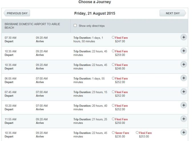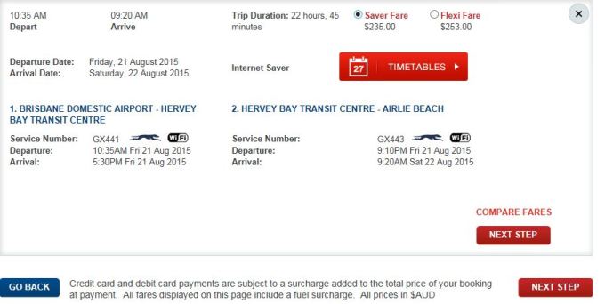这个灰狗巴士最大的好处是有夜车,可以睡一晚上,早晨到达Airlie Beach的。对于时间紧张而出发地又没有飞机去往圣灵群岛的童鞋是个值得考虑的选择。不过灰狗巴士是没有卧铺的哦,好在座位还算宽敞。在旺季期间,灰狗巴士去往Airlie Beach的车几乎全部满员的。缺点就是灰狗车票并不便宜的,根据距离远近票价也会不一样的,如果距离远,票价会比特价机票还贵的。比如我从Hervey Bay到Airlie Beach的车票要174澳币,晚上9点左右从Hervey Bay出发,第二天早晨9点左右到达Airlie Beach。