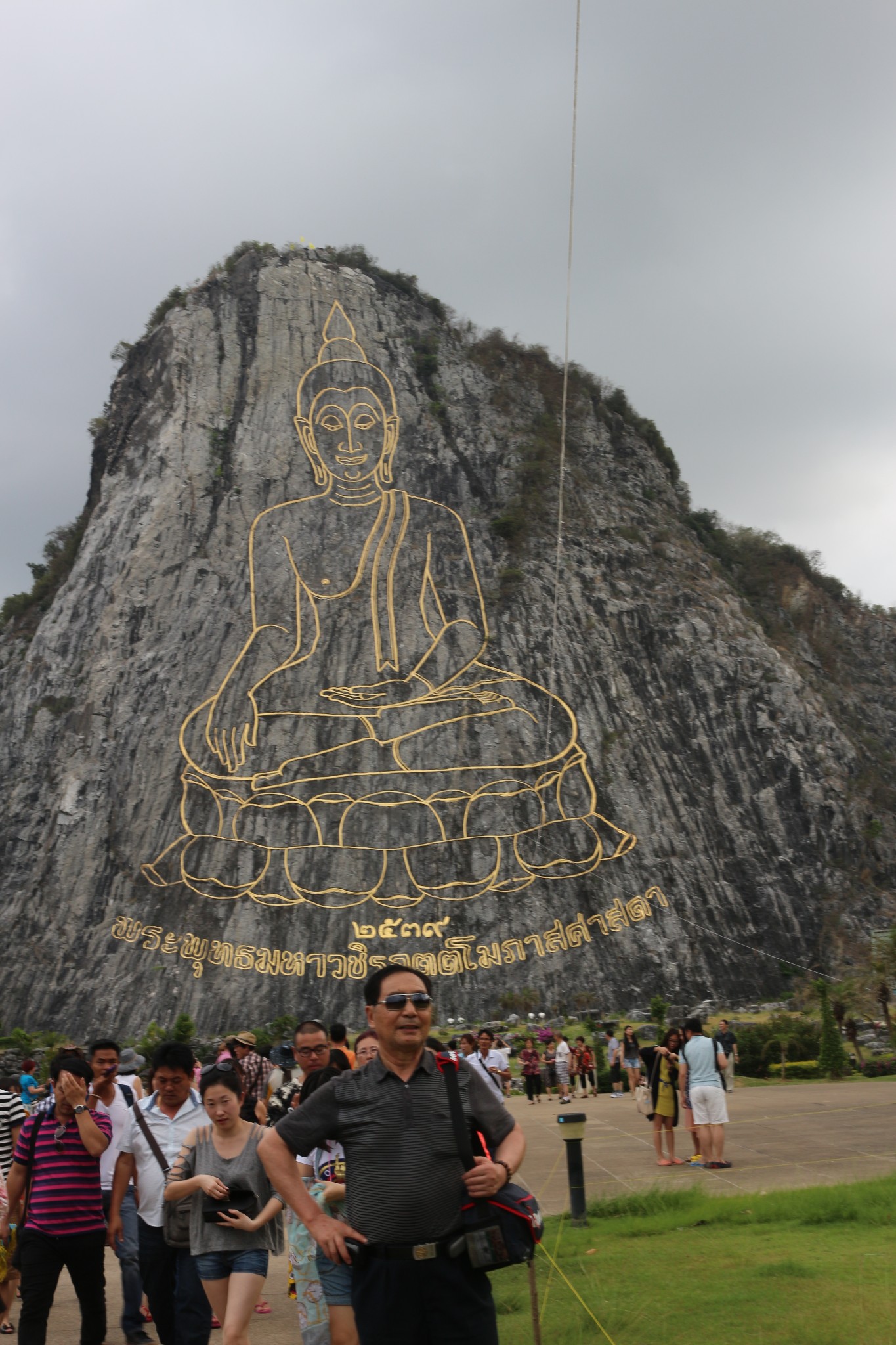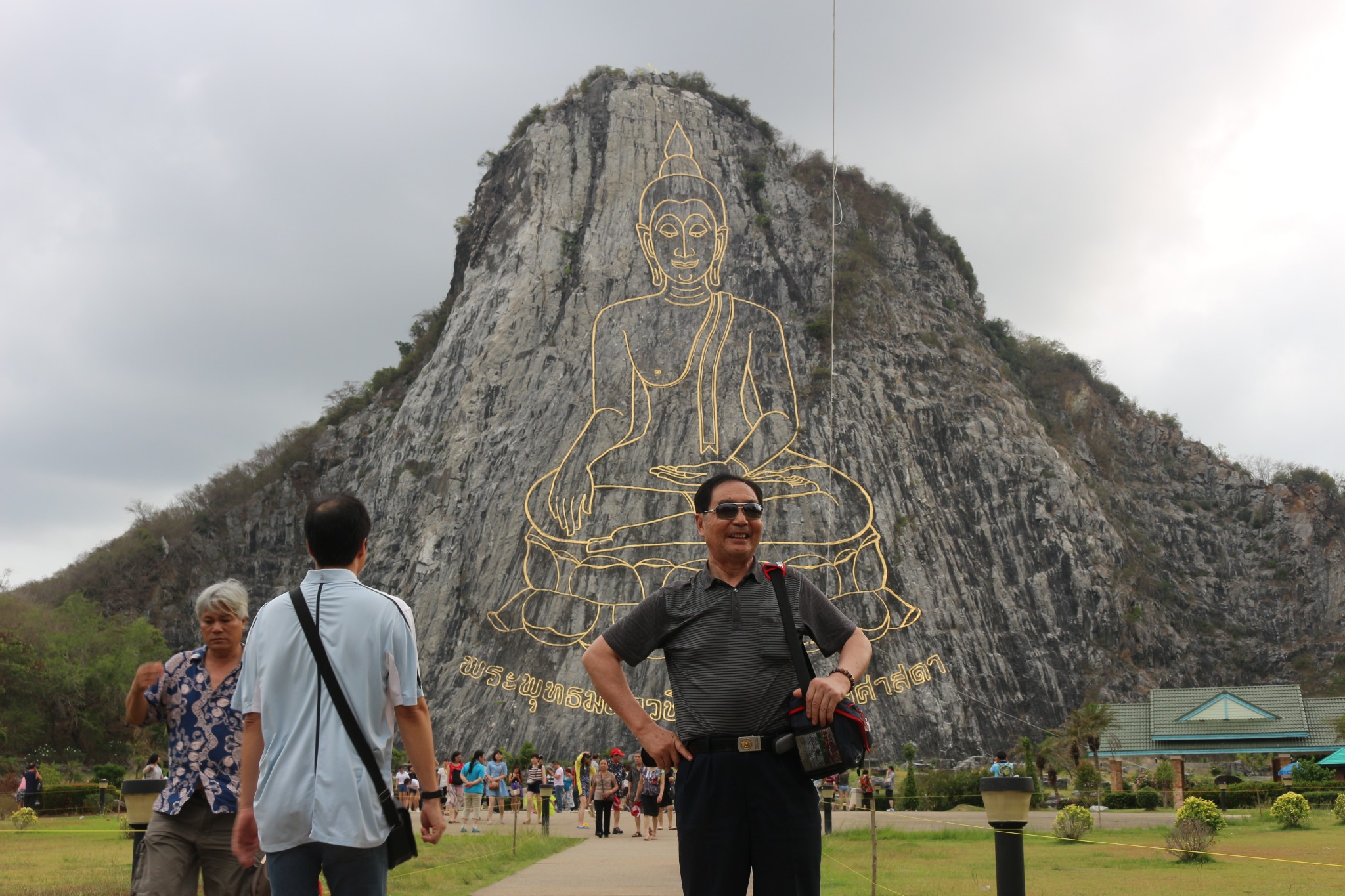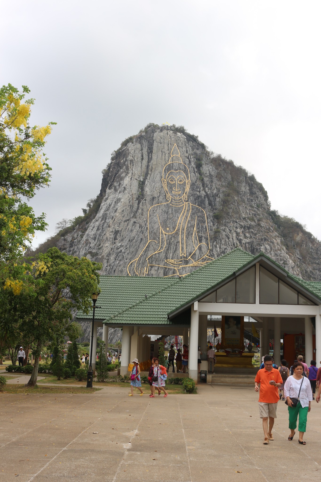 七珍佛山是为了庆祝泰皇登基50周年纪念,特别用雷射雕刻一座释迦牟尼佛的神像,此为芭达雅最大的释迦牟尼佛雕像,共用18吨重的24K金雕塑而成,此山中亦挖掘出许多的古佛像。七珍佛山令人大开眼界,传说这是一个高僧为当今九世皇找的龙脉所在,就着山形剖开一面山,削平山面,依山用4吨黄金刻了一座大佛,据说是用高科技镭射画出打坐佛像,用意大利进口的金镶嵌线条,金线耀眼,在佛的心脏处藏有释迦牟尼的舍利。打座的佛像慈眉善目,数里之外也能看到。由于科学的合理安排,再加上地理环境方面的原因,除正面外,左右两面较偏的地方也能看清坐在莲花座上的佛像金身。